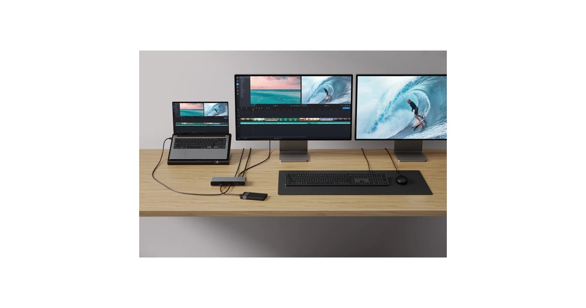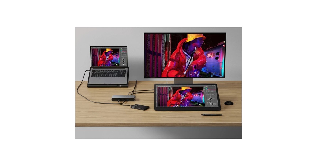 Das Thunderbolt 4 Dock wurde für Unternehmen, PC-Spieler und Videobearbeiter entwickelt, die eine fortschrittliche Konnektivitätslösung suchen, die maximale Bandbreite und epische Bildschirmauflösungen bietet. Es verfügt über zwei Thunderbolt 4 Downstream-Ports, die 40 Gbit/s und 32 Gbit/s PCIe übertragen können, und einen Thunderbolt 4 Upstream-Port, der bis zu 96 W Power Delivery-Ladung für Ihr Host-Gerät bietet.
