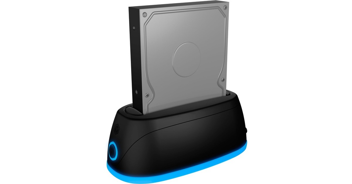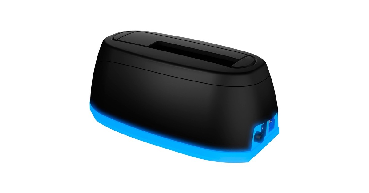 Der hübsch geformte Korpus der Dockingstation besticht durch einen blauen Lichterkranz sowie LED Akzente und bietet einen Einsteckplatz für eine 2,5" oder eine 3,5" SSD/HDD. Über den USB 3.0 Hostanschluss sind Datentransferraten von bis zu 5 Gbit/s möglich. Die Dockingstation lässt sich dank USB-A, USB-B oder USB-C, flexibel mit fast allen gebräuchlichen Computern verbindenArt.-Nr.: 1740510