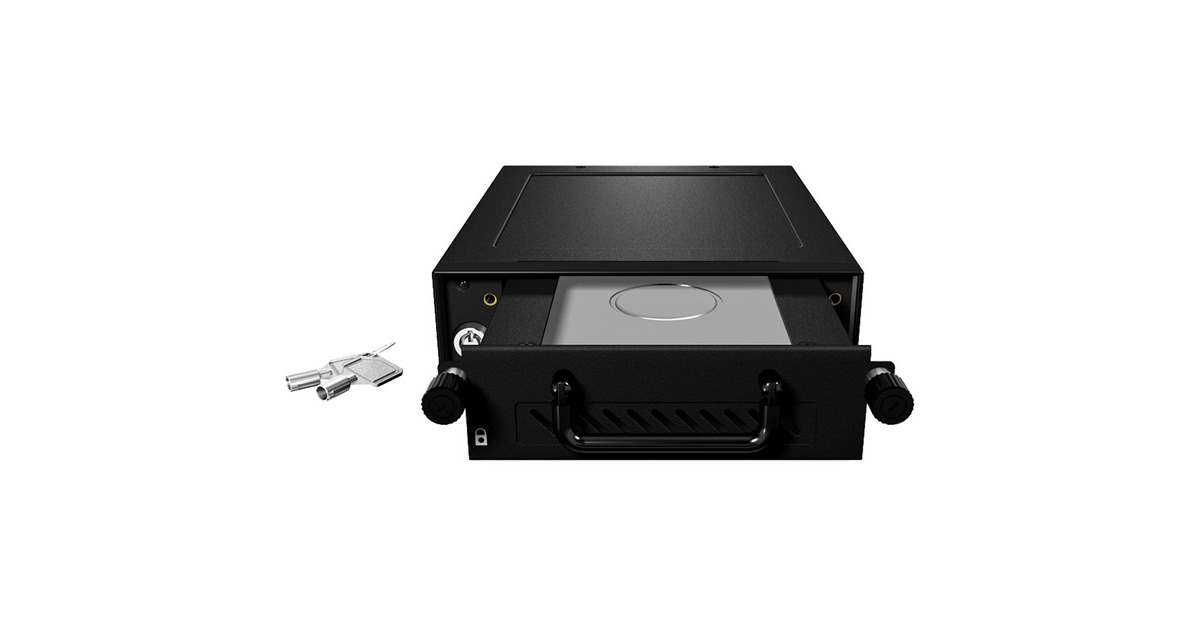 unterstützt SATA III / SAS II (6 Gbit/s), Abschließbar, ein 30-mm-Lüfter an der Rückseite, zwei Rändelschrauben zum Sichern der Blende |