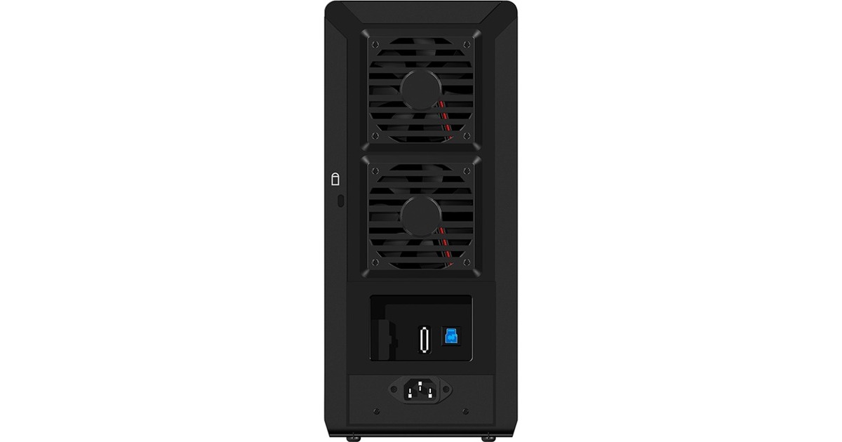 Stromanschluss, USB-Anschluss, eSATA-Anschluss, 2x 80x80x20 mm temperaturgesteuerte Lüfter |