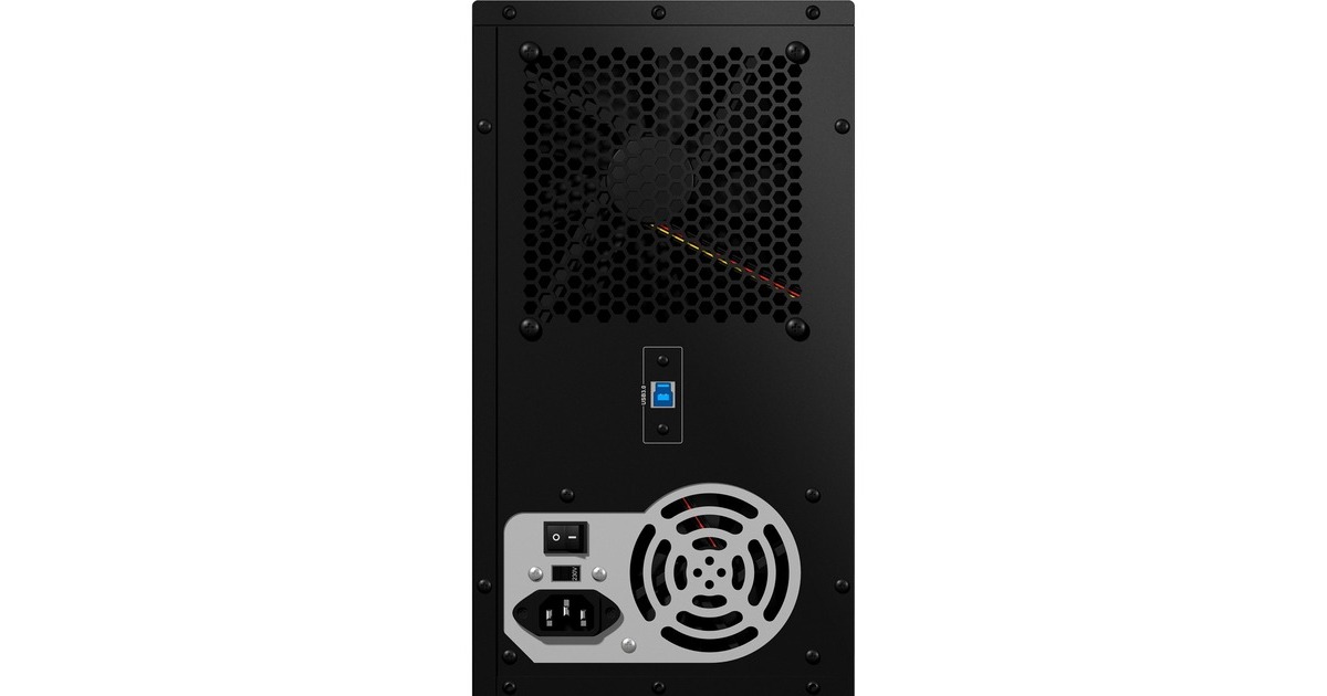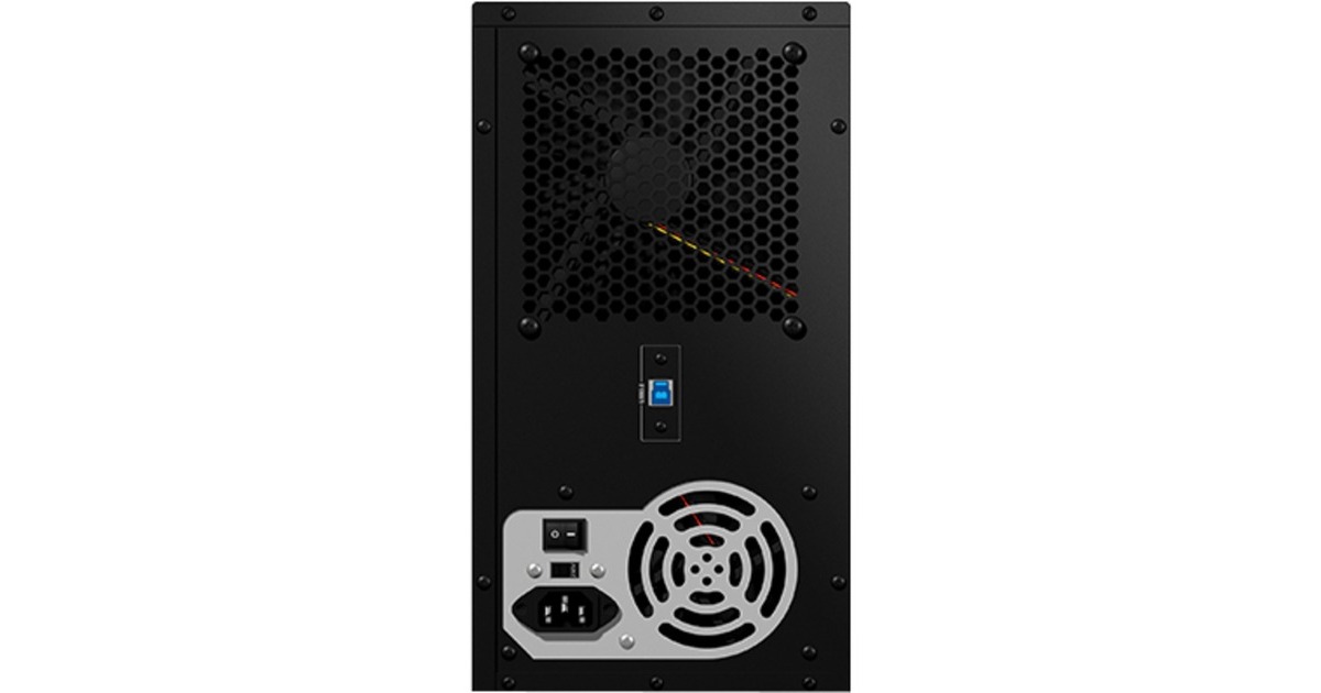 USB-3.2-Host-Verbindung, An-/Ausschalter, Stromanschluss, Netzteillüfter |