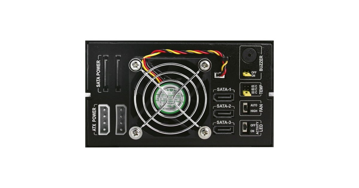 Aluminium, ein 80 mm-Lüfter, HotSwap-fähig; 3x 3,5" SAS/SATA III; LED: Betrieb (blau), Festplattenzugriff (orange), An/Aus, Alarm; Stromversorgung: 2x 4pin, 2x SATA Stromstecker; Maße: 215x148x86 mm; Gewicht: 1320 Gramm |