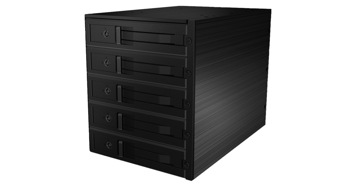 Das ICY BOX IB-565SSK ist ein Einbaurahmen (Backplane) für bis zu fünf 3,5" HDDs/SSDs und wird auf drei 5,25" Schächte verbaut. Der IB-565SSK ist abschließbar, HotSwap-fähig und unterstützt SATA I/II/III. Mit einer 80 mm größen Lüfter zur Wärmabfuhr und einem hochwertigen Aluminiumgehäuse sind die Festplatten immer optimal geschützt.Art.-Nr.: 1242722