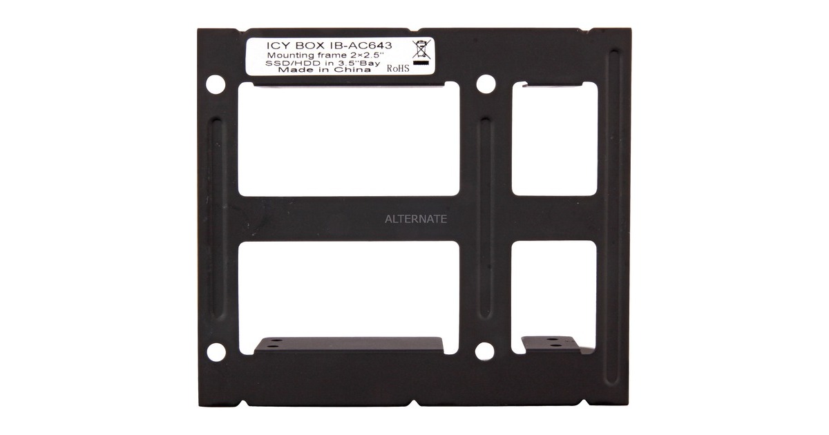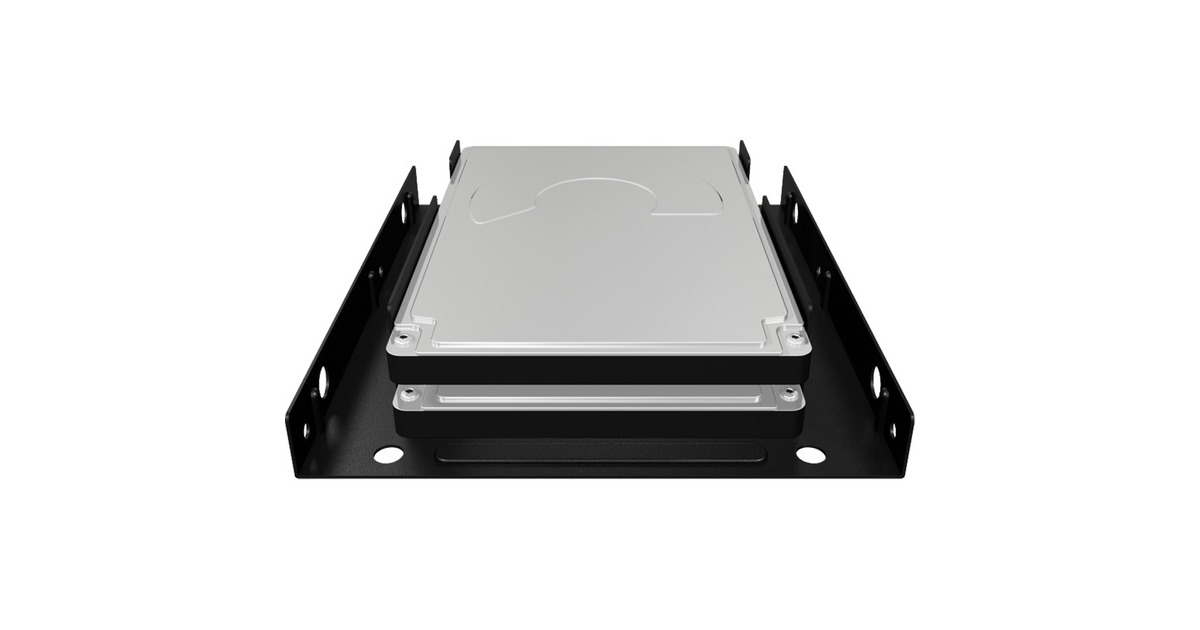 Der Einbaurahmen ICY BOX IB-AC643 dient zum Einbau von bis zu zwei 2,5"-Laufwerken in einen freien 3,5"-Laufwerksschacht. An der Unterseite kann ein optional erhältlicher 80-mm-Lüfter montiert werden.Art.-Nr.: 1167170