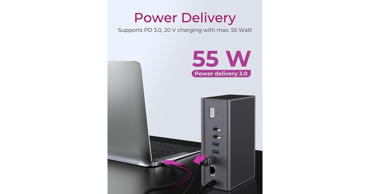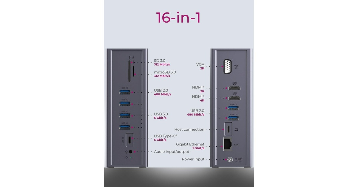 Die Dockingstation ICY BOX DK2262AC besitzt ein solides Gehäuse aus einer besonderen Aluminiumlegierung, die das Gehäuse widerstandsfähiger macht als gewöhnliche Aluminium- oder Kunststoffprodukte. Das Material und das Kühlkörperdesign mit Kühlrippen unterstützen die Wärmeableitung für einen hervorragenden passiven Kühleffekt und schützen das Gerät auch bei starker Beanspruchung vor Überhitzung. Die IB-DK2262AC stellt mit zwei HDMI und einer VGA Anbindung bis zu drei Video-Schnittstellen verschiedener Auflösungen zur Verfügung, die den gleichzeitigen Anschluss von HDMI und VGA-Anzeigegeräten im Erweiterungsmodus ermöglichen. Dies erfolgt durch die Kombination mehrerer aktueller Technologien wie DisplayLink und DisplayPort Alt Mode. Der Lan-Anschluss bietet ein geringeres Risiko als beispielsweise Verbindungen über WLAN und einen besseren Weg, Dateien zwischen Geräten mit hoher Sicherheit und maximaler Übertragungsrate zu übermitteln.Art.-Nr.: 1767585