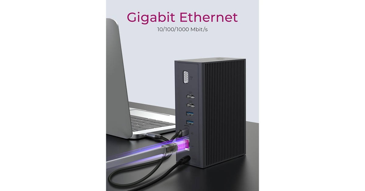2x HDMI-Ausgang, 1x RJ-45, 3x USB-A 2.0, 3x USB-A 3.2 Gen 1 (5 Gbit/s), 1x USB-C 3.2 Gen 1 (5 Gbit/s), 1x VGA-Ausgang |