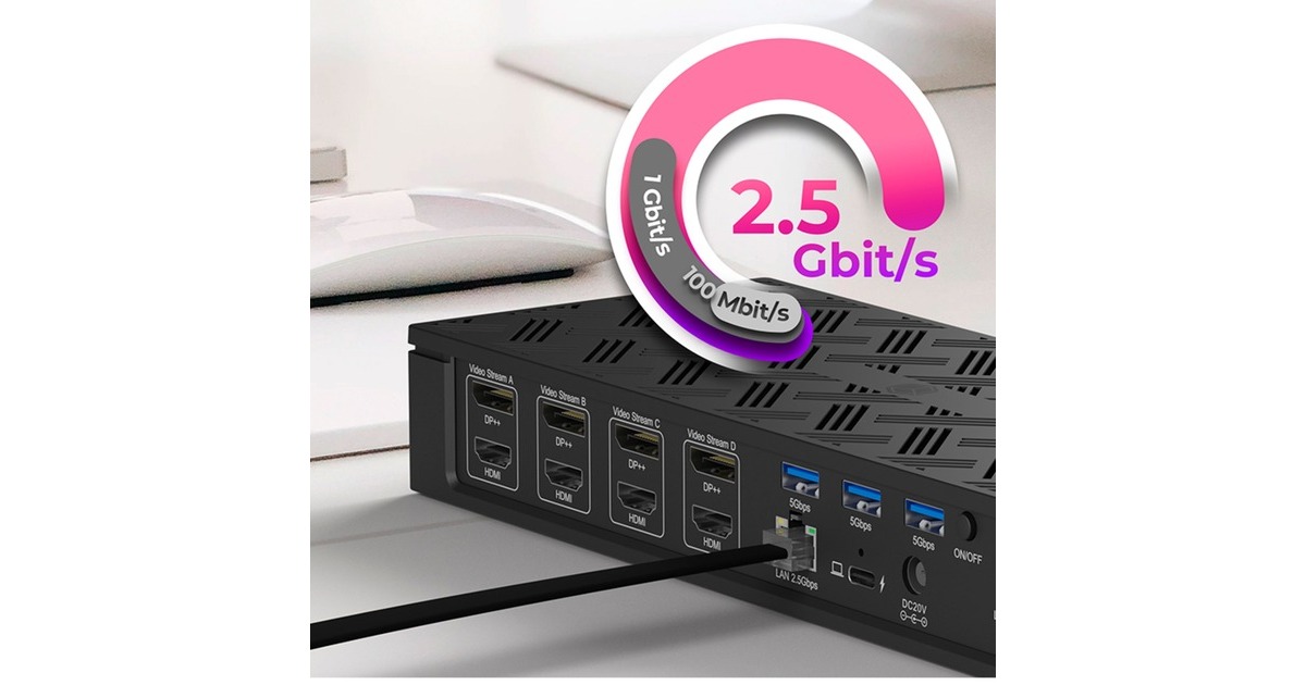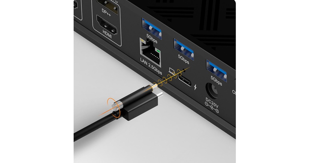 4x DisplayPort-Ausgang, 4x HDMI-Ausgang, 1x Kopfhörer/Mikrofon-Kombi-Anschluss, 1x RJ-45, 3x USB-A 3.2 Gen 1 (5 Gbit/s), 1x USB-A 3.2 Gen 2 (10 Gbit/s), 1x USB-C 3.2 Gen 1 (5 Gbit/s) |