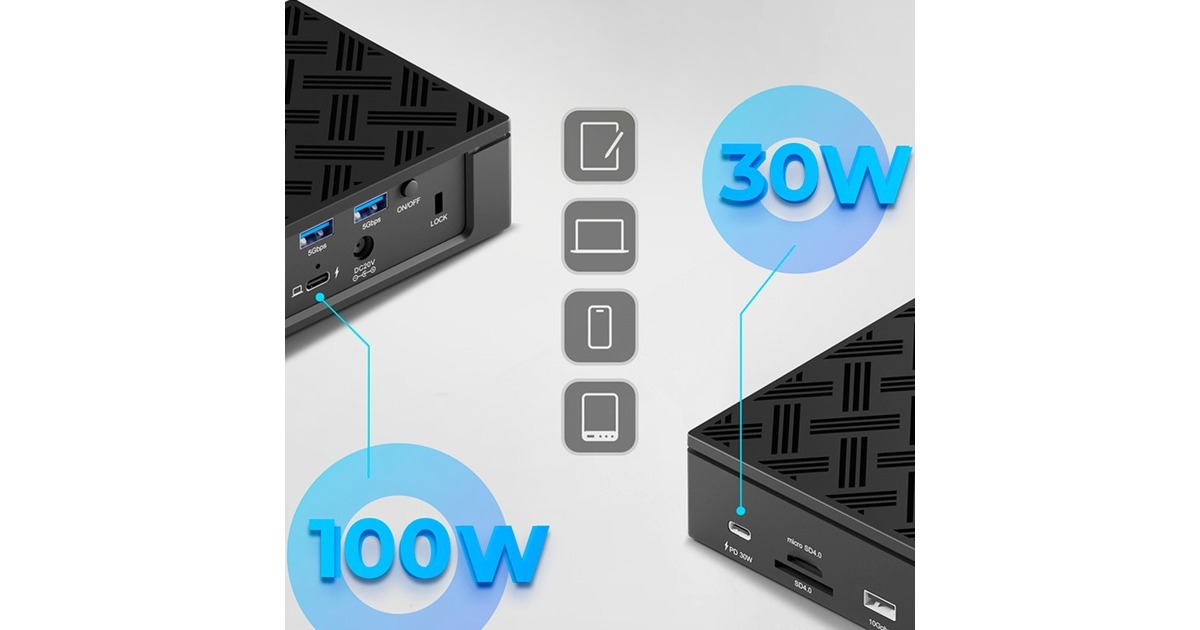 Die ICY BOX IB-DK2288AC ist eine Dockingstation für Notebooks oder auch PCs (Windows und MacOS), die sich dank der insgesamt acht Video-Schnittstellen für ein produktives Arbeiten eignet. Über die HDMI- und DisplayPort Ausgänge können bis zu vier Displays mit max. 3840x2160@60 Hz betrieben werden. Noch höhere Auflösungen von zweimal 5K@60 Hz werden z.B. mit zwei Monitoren über die DisplayPort Schnittstellen erreicht. Die IB-DK2288AC unterstützt Power Delivery mit 100 Watt bzw. 30 Watt, besitzt insgesamt vier USB-A und einen USB-C Port, eine Gigabit LAN Schnittstelle sowie eine Headset Buchse. SD/microSD Kartennutzer erfreuen sich über die schnellere Version 4.0.Art.-Nr.: 100003728
