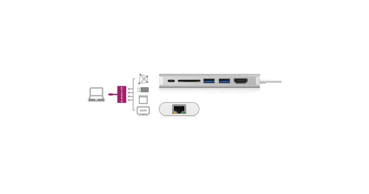 Mit der IB-DK4034-CPD Dockingstation für kompatible USB-Type-C Notebooks oder PCs erweitert man sein System mit bis zu sechs weiteren Anschlüssen. Neben einem HDMI Port mit bis zu 4K Ausgabe-Auflösung, verfügt die IB-DK4034-CPD über einen LAN-Anschluss, zwei USB 3.0 Ports mit einer Datenübertragungsrate von bis zu 5 Gbit/s, einem SD-Kartenleser und einen weiteren USB-Type-C Port. Letzterer kann mobile Geräte aufladen wenn die Dockingstation mit einem entsprechenden Netzteil angeschlossen wird. Die Dockingstation funktioniert aber auch ohne externes Netzteil über USB und überzeugt durch ein hochwertiges, schlankes und sehr leichtes Aluminiumgehäuse.Art.-Nr.: 1376432