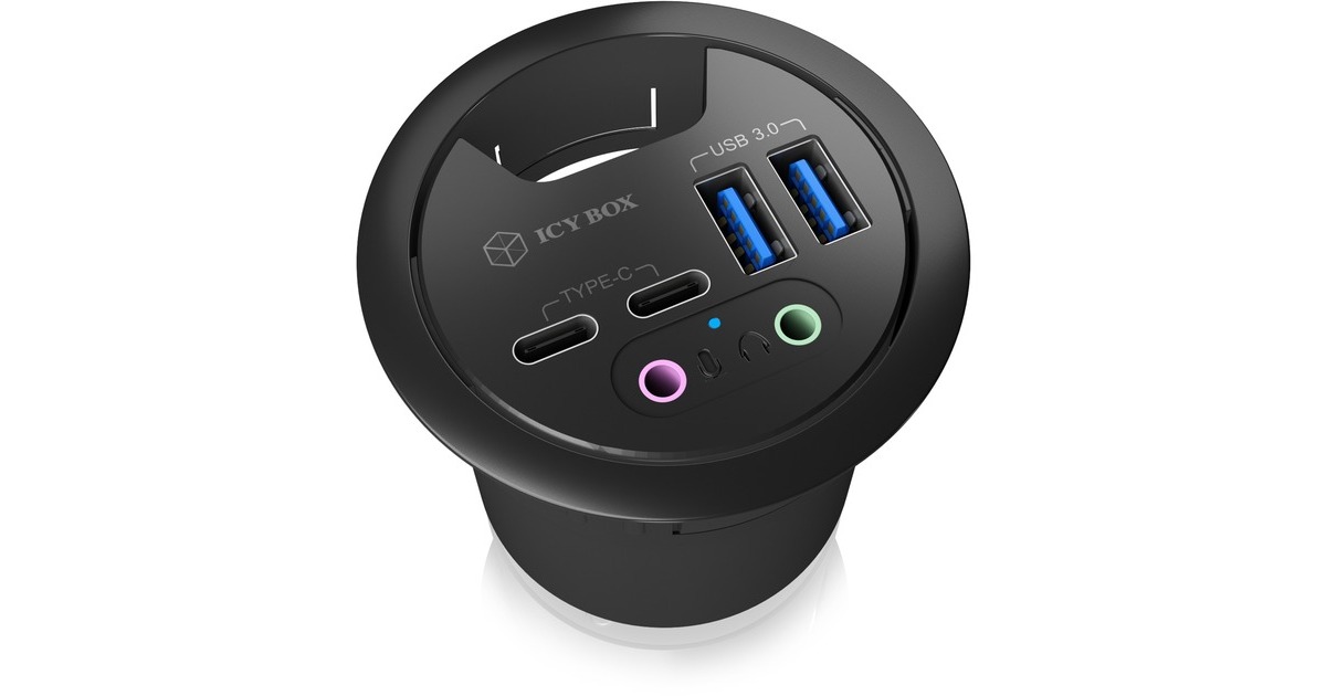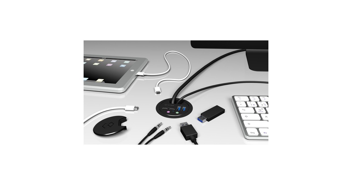 Der IB-HUB1403B ist als für Bohrungen in Schreibtischen (60 mm) vorgesehen. Es kann werkzeuglos in vorgebohrte Löcher eingebaut werden und bietet ausreichend Platz für mehrere Kabel. Der IB-HUB1403B dient als USB Hub als auch als Kabeldurchführung für weitere Kabel auf dem Tisch oder für Maus und Tastaturkabel.Art.-Nr.: 1523387