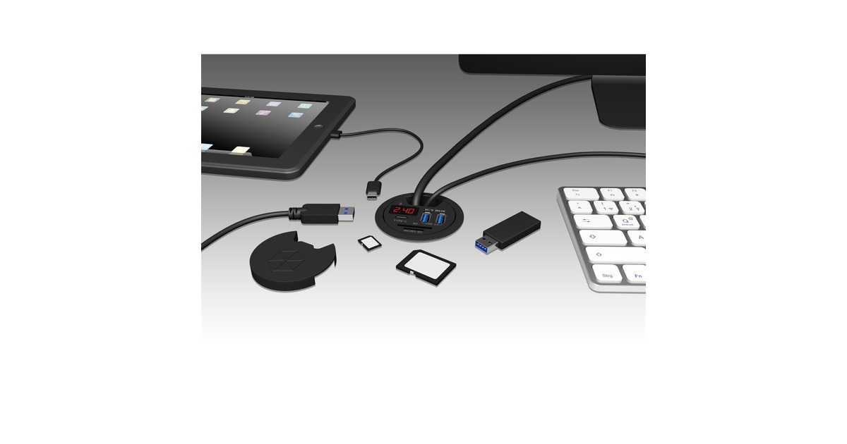 Der ICY BOX IB-Hub1404 USB Hub kann im Schreibtisch versenkt werden. Der ICY BOX IB-Hub1404 USB Hub kann in vorgebohrten Löchern (60 mm Duchmesser) ohne Werkzeuge installiert werden und bietet genügend Platz, um Kabel durchzuführen.Art.-Nr.: 1342723
