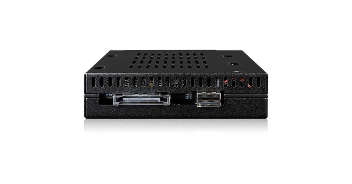 Das Icy Dock flexiDOCK MB021VP-B ist ein kompakter U.2 NVMe PCIe 3.0/4.0 SSD-Wechselrahmen, der über einen Slimline SAS (SFF-8654) Anschluss Datenübertragungsraten von bis zu 64 Gbit/s unterstützt. Er passt in den externen 3,5" Laufwerksschacht (Floppy-Schacht) eines Computergehäuses und ermöglicht die Installation und den Austausch von Laufwerken ohne Einschub und ohne Frontklappe. Anwender können auf ihre U.2 SSD zugreifen, ohne das Computergehäuse zu öffnen oder irgendwelche Werkzeuge oder Schrauben zu verwenden. Man legt einfach eine U.2 SSD ein und betätigt die Einschalttaste, um das Laufwerk anzuschalten, und schon kann es losgehen. Dank des Designs mit offener Gerätefront können Anwender ihre U.2 NVMe SSDs innerhalb von Sekunden austauschen. Wenn ein Laufwerk in das MB021VP-B eingesetzt wird, springt die Auswurftaste des Geräts heraus. Um das Laufwerk zu entfernen, drückt man die Auswurftaste wieder hinein und das Laufwerk springt heraus. Die elegante und leicht ablesbare Status-LED ist in die Auswurftaste integriert und zeigt den aktuellen Status des Laufwerks an. Icy Dock hat einen cleveren Mechanismus zur Laufwerksführung entwickelt, der ein reibungsloses und zuverlässiges Einsetzen/Entfernen des Laufwerks ermöglicht, unabhängig davon, ob man eine U.2 SSD mit 7 mm oder 15 mm Höhe verwendet. Auf beiden Seiten des Laufwerks befinden sich zwei Führungsnocken und eine Metallklappe auf der Rückseite, die sich automatisch an die Höhe des Laufwerks anpasst. Jede der Führungsnocken klemmt das Laufwerk fest, während die anpassungsfähige Metallklappe das Laufwerk nach unten drückt, um die Stabilität des Laufwerks zu verbessern. Um die volle Leistung von U.2 NVMe PCIe 4.0x4 SSDs auszuschöpfen, verwendet das MB021VP-B einen Slimline SAS (SFF-8654) Anschluss, der Übertragungsraten von bis zu 64 Gbps unterstützt und abwärtskompatibel mit U.2 NVMe PCIe 3.0 x4 SSDs bis zu 32 Gbps ist.Art.-Nr.: 1825965