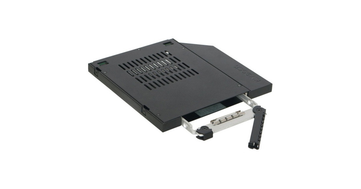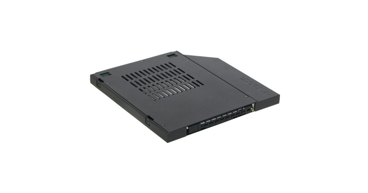 Mit dem ToughArmor MB411SPO-2B stellt Icy Dock einen, komplett aus Metall gefertigten, 2,5” SATA / SAS Festplatten- / SSD-Wechselrahmen für den 9,5mm hohen optischen Ultra Slimline Laufwerksschacht (Ultra-Slim ODD-Schacht) vor. Dieser findet sich hauptsächlich in neueren Laptops, Desktop-PCs und Workstations. Der MB411SPO-2B wird komplett aus Metall hergestellt und stellt somit eine maximale Lebensdauer sicher und widersteht selbst den widrigsten Umgebungsbedingungen. Der EZ Slide Slim Tray unterstützt 2,5" SATA Festplatten und SSDs jeder Kapazität mit Bauhöhen von 5 bis 7mm und ermöglicht schnelle Wechsel via Hot Swap für eine einfache Wartung. Darüber hinaus unterstützt der MB411SPO-2B Übertragungsraten von bis zu 6 GBit/s, während der interne SATA-Anschluss bis zu 10.000 Laufwerkswechsel erlaubt. Auf Grund des soliden Designs und der Hot Swap Funktion, ist der MB411SPO-2B eine perfekte Speicherlösung für alle Anwender, die ein hochwertiges, robustes Gehäuse mit entnehmbarem Tray benötigen - sei es für den Transport, die Archivierung oder den Schutz von sensiblen Daten. Zu diesen Anwendern gehören unter anderem Behörden und öffentliche Einrichtungen, digitale Kinos sowie kleine und mittelständische Unternehmen.Art.-Nr.: 1398970