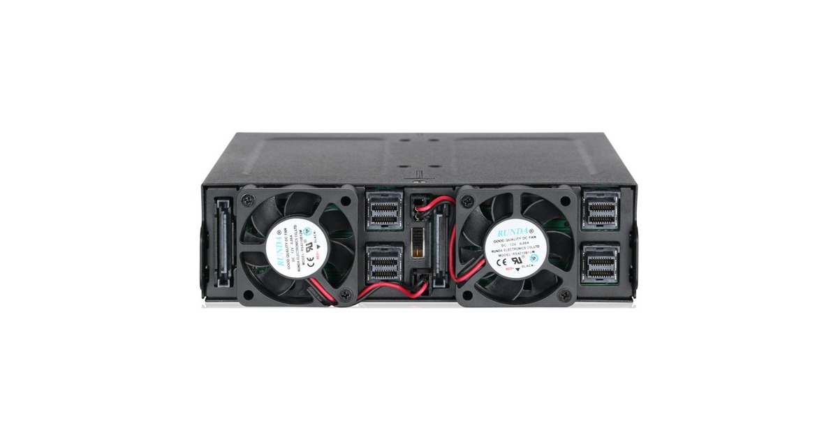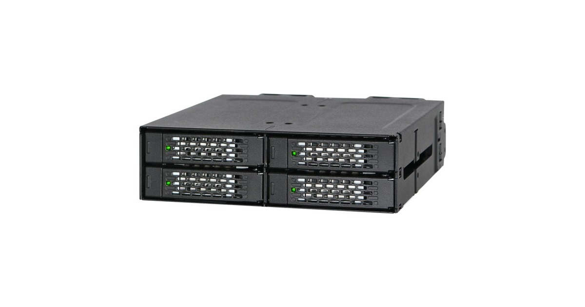 Host Interface: MiniSAS HD (SFF-8643), Stromanschluss: 2 x 15 Pin SATA Stromanschluss, Kühlung: zwei rückseitige 40-mm-Lüfter, Wärmeableitung über Metall, HDD Zugriffsanzeige: Betriebsbereitschaft Grün leuchtend, Laufwerksaktivität Grün blinkend, Hot Swap: Ja |