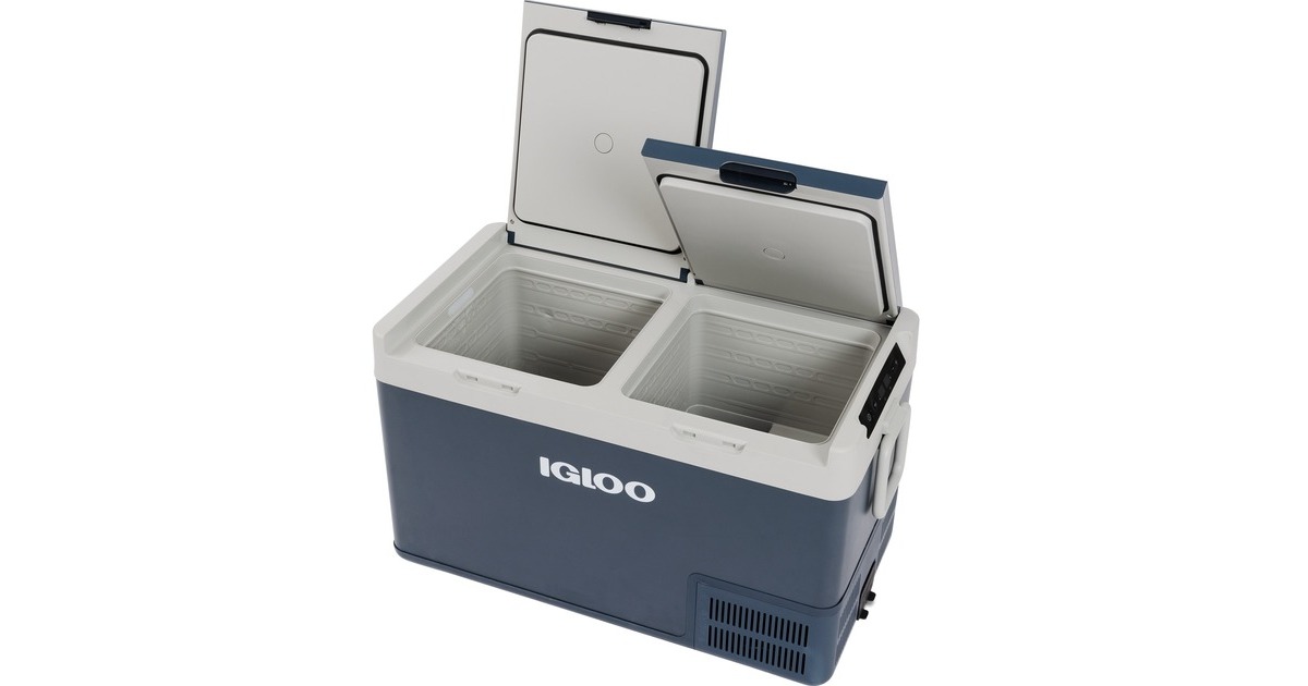 Die ICF80DZ von Igloo ist eine Kompressor-Kühlbox mit einem großen Temperaturbereich von +20 °C bis -18 °C und zwei Kühlfächern (46,2 Liter und 34,5 Liter), die unterschiedlich temperiert werden können. So sorgt die Kühlbox z.B. für kalte Getränke und lagert gleichzeitig das tiefgefrorene Grillgut. Einstellen lässt sich die Wunschtemperatur über das intuitiv zu bedienende Display. Hier lässt sich auch der 3-stufigen Batteriewächter aktivieren, der eine Unterspannung der Fahrzeugbatterie verhindert. Dank der abgerundeten Ecken im Stauraum ist die ICF80DZ leicht zu reinigen und das LED-Licht hilft, die Übersicht auch im Dunkeln zu halten. Die ICF80DZ kann mit den mitgelieferten Kabeln flexibel über 12 Volt im PKW, 24 Volt im LKW und über 230 Volt zu Hause oder auf dem Campingplatz betrieben werden.Art.-Nr.: 100039197