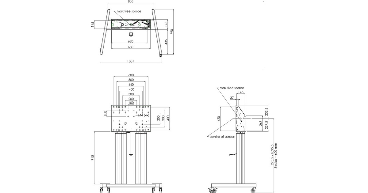 Ein elektrisch höhenverstellbarer Fahrwagen geeignet für Displays bis VESA 800 x 600 mm. Der Fahrtwagen verfügt über eine konstante und leise Höhenverstellung sowie eine integrierte Bildschirmhalterun. Eine weitere Besonderheit der eingebetteten VESA Halterung, ist das sie als Unterstützung für einen Desktop-PC auf der Rückseite verwendet werden kann. Die max. unterstützte Displaygrösse ist 248,92 cm (98“) und das max. Gewicht liegt bei 160 kg.Art.-Nr.: 1666374