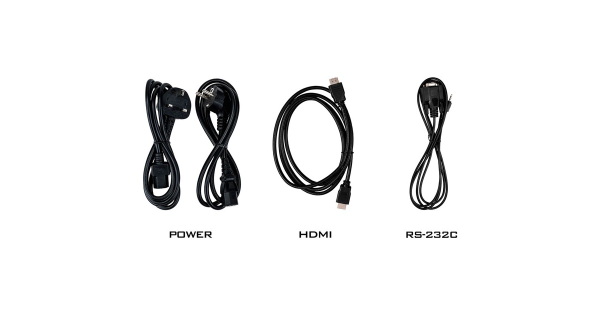 Fernbedienung (inkl. Batterien), Netzkabel, HDMI Kabel, RS232c Kabel, Leitfaden zur Inbetriebnahme, Sicherheitshinweise |