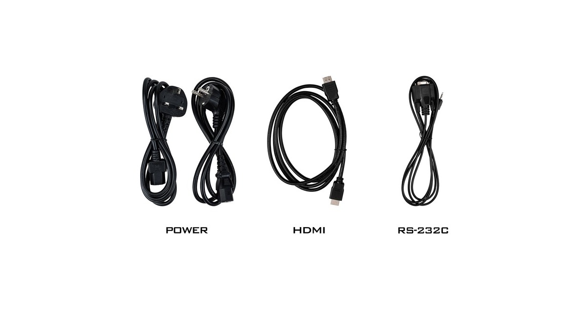 Netzkabel, HDMI Kabel, RS-232c Kabel, Wandhalterung, Wandhalterungsführung, Schrauben, Dübel, Aufkleber für Schraubenlöcher, Fernbedienung inkl. Batterien, Leitfaden zur Inbetriebnahme, Sicherheits-Hinweise |