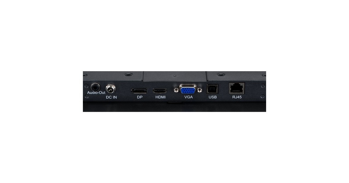 1x HDMI-Eingang, 1x DisplayPort-Eingang, 1x VGA-Eingang, 1x 3,5-mm-Audio-Ausgang |