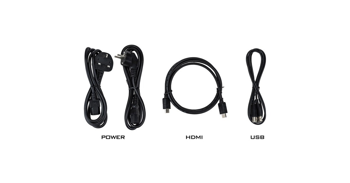 Netzkabel, USB Kabel, HDMI Kabel, Leitfaden zur Inbetriebnahme, Sicherheits-Hinweise |
