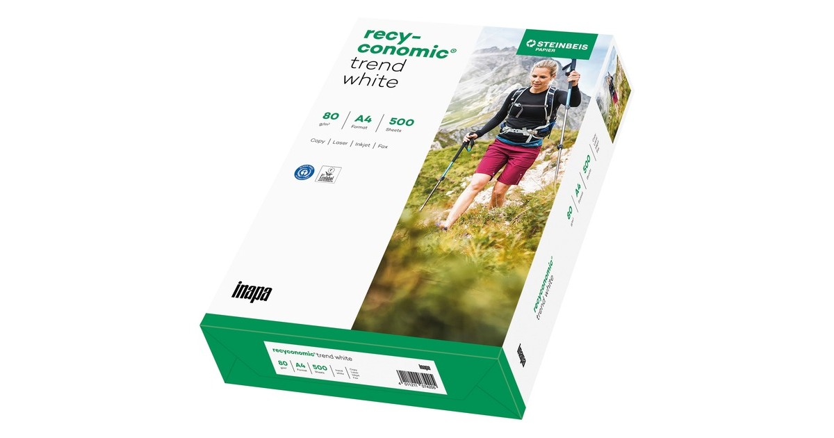 Das Recyconomic Trend white A4 ist ein naturweißes Recyclingpapier mit matter Oberfläche für den täglichen Gebrauch in Kopierern, Laser- und Tintenstrahldruckern. Dieses Pack enthält 500 Blatt Papier im Format DIN A4 mit einer Grammatur von 80 g/m².Art.-Nr.: 1733090