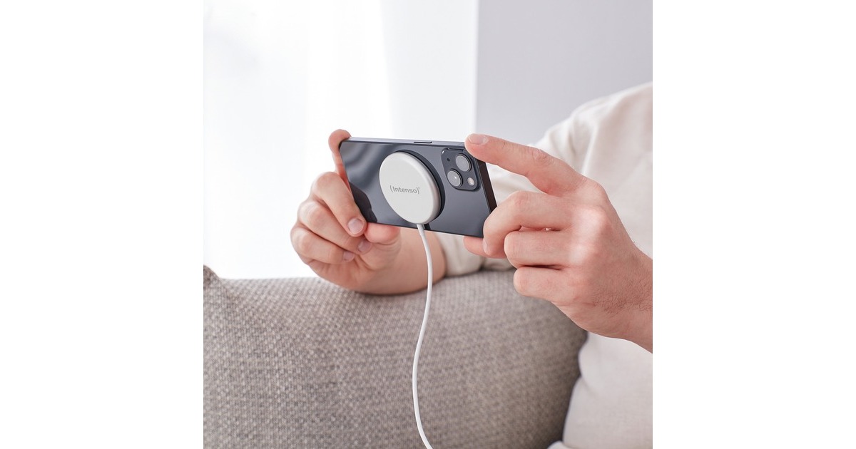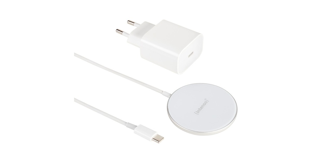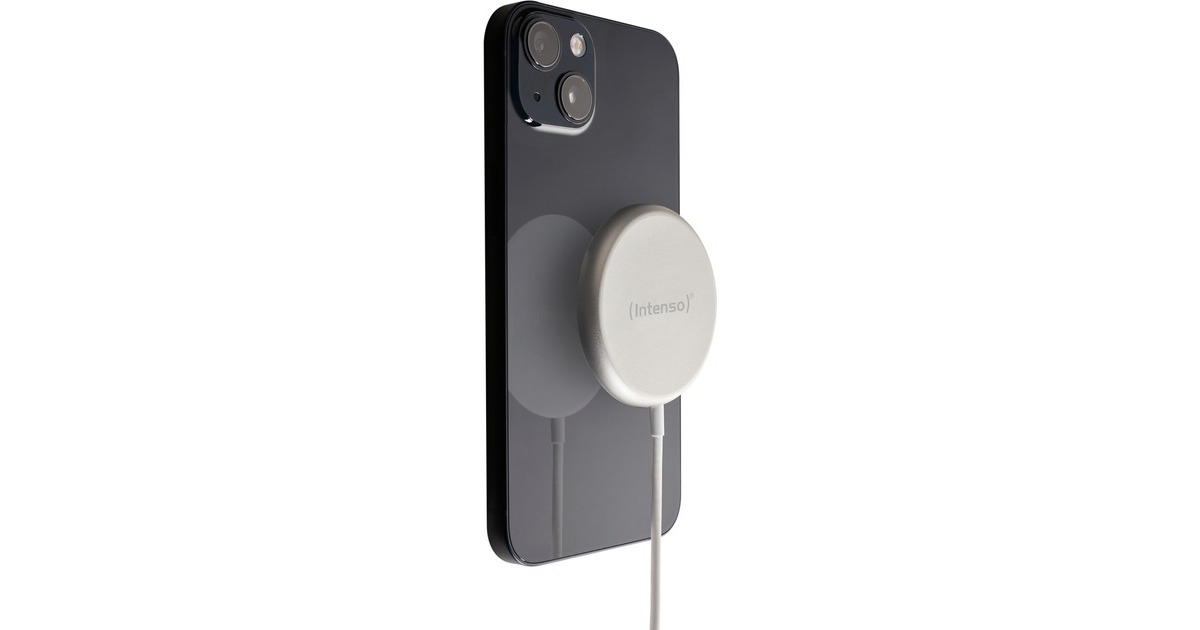 Die Ladestation Wireless Charger MW1 von Intenso kann das Smartphone effizient und schnell während der Nutzung aufladen. Der Wireless Charger MW1 unterstützt die MagSafe Ladetechnologie von Apple, die seit dem iPhone 12 in den neuen iPhones verbaut ist. Der magnetische Ring verbindet sich mit dem im iPhone verbauten MagSafe Magnetring und sorgt dafür, dass das Ladegerät perfekt am Smartphone positioniert haften bleibt. Dank der Kabellänge von 1,5 Metern bietet der Charger besonders viel Spielraum beim Aufladen. Der Ladevorgang wird durch Kunststoffhüllen bis 5mm Dicke nicht beeinträchtigt. Der Wireless Charger MW1 lädt im Standardmodus mit bis zu 5 Watt, im Schnelllademodus mit bis zu 15 Watt. Der passende Schnellladeadapter wird mitgeliefert. Das Ladepad Wireless Charger MW1 ist leicht, dünn und so klein, dass es sich bequem in jeder Jacken- oder Handtasche verstauen lässt. Das elegante High-End-Design in weiß, mit hochwertigem Aluminiumgehäuse und einer Oberfläche aus gehärtetem Glas macht den Magnetic Wireless Charger zum eleganten Accessoire für alle, die ihr Smartphone jederzeit nutzen möchten, auch auf Reisen, im Zug oder im Cafe.Art.-Nr.: 100009492
