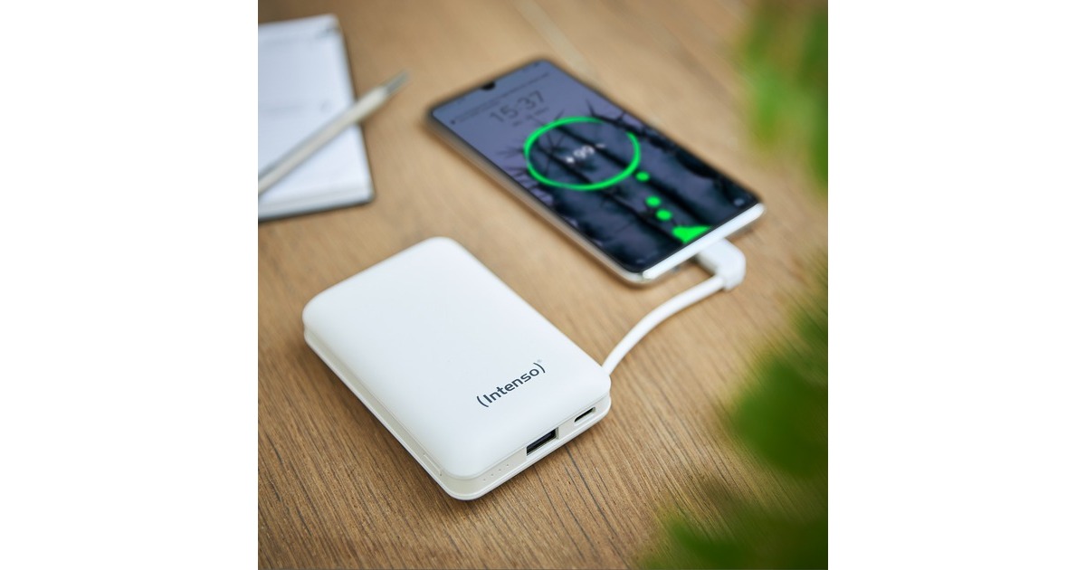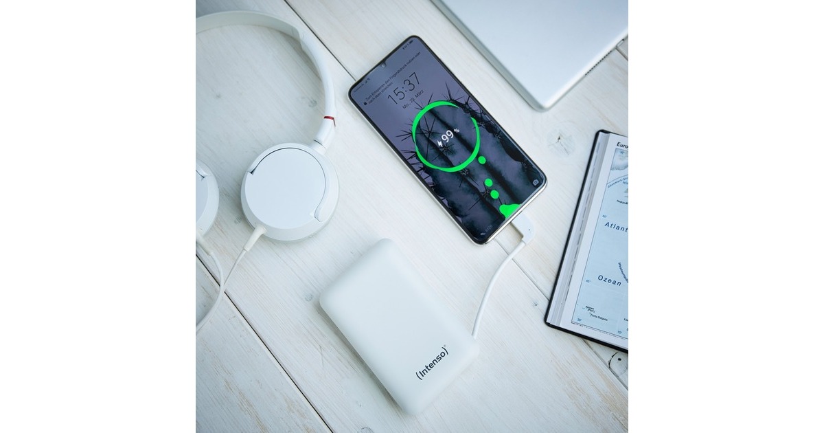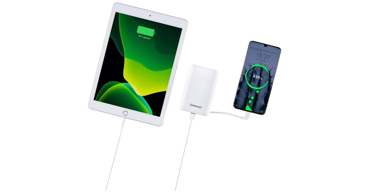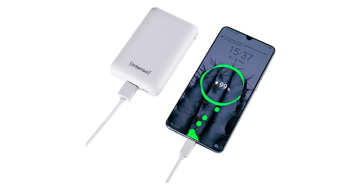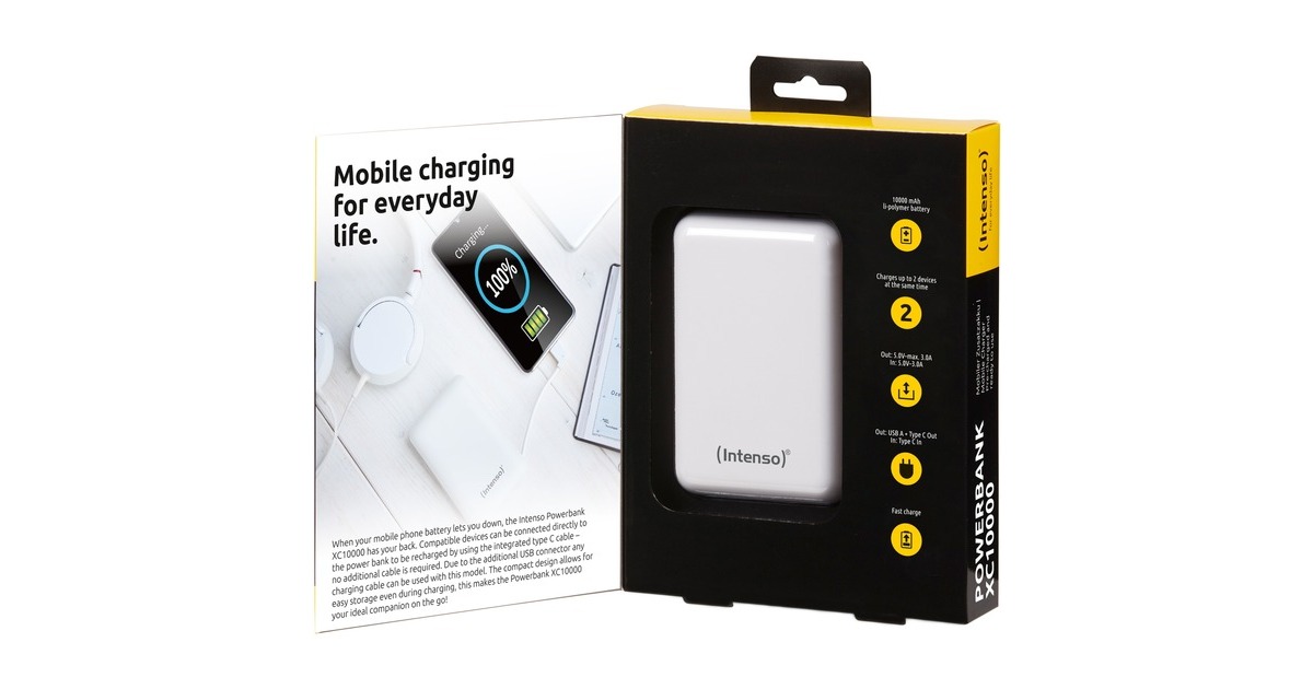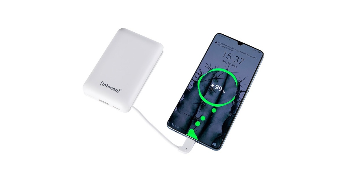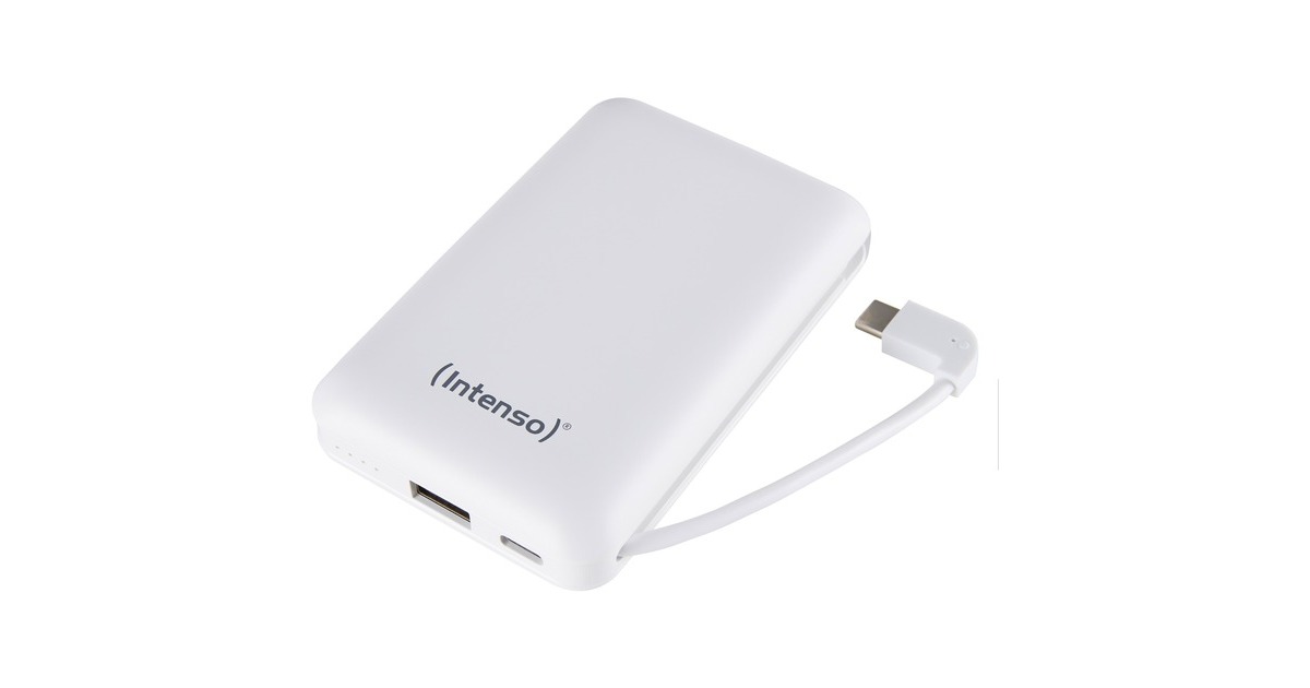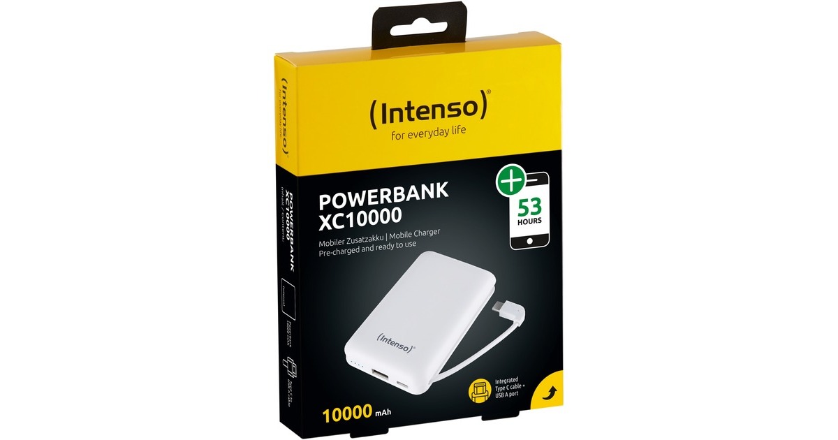 Die Powerbank Intenso XC10000 verfügt über einen USB A Anschluss (USB A OUT- Output 2.4 A) und über ein integriertes USB-C mit Stecker (Type C OUT- Output 3A). Es gibt zwei Möglichkeiten ein Gerät über die Powerbank zu laden: 1. Den Type C Anschluss (Type C OUT) des integrierten Kabels mit dem Type C Anschluss des zu ladenden Gerätes verbinden. Der Ladevorgang startet automatisch. 2. Das mitgelieferte USB Kabel mit dem USB A Anschluss (USB A OUT) an der Powerbank und das andere Ende des USB Kabels mit dem Type C Anschluss des zu ladenden Gerätes verbinden. Man kann zwei Geräte gleichzeitig mit der Powerbank laden, beispielsweise ein Tablet am USB A (USB A OUT) Anschluss und ein Smartphone über das integrierte Kabel mit Type C Stecker (Type C OUT). Natürlich kann man auch sein eigenes USB-Ladekabel nutzen, um die Powerbank mit seinem Gerät zu verbinden.Art.-Nr.: 1658707