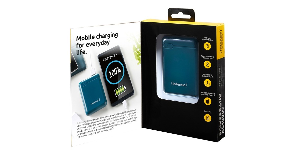 Intensos XS10000 ist eine äußerst kompakte Powerbank mit 10.000 mAh Gesamtkapazität, die jederzeit und gerade unterwegs Smartphones, Tablets und Co. mit Strom versorgt. Die XS10000 besitzt einen USB-A + USB-C Ausgang und wird selbst über MicroUSB aufgeladen. Über eine dedizierte Taste kann man schnell die Restkapazität einsehen.Art.-Nr.: 1641721