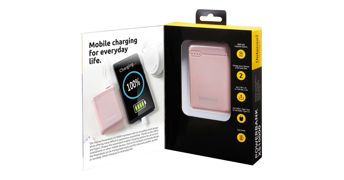 Intensos XS10000 ist eine äußerst kompakte Powerbank mit 10.000 mAh Gesamtkapazität, die jederzeit und gerade unterwegs Smartphones, Tablets und Co. mit Strom versorgt. Die XS10000 besitzt einen USB-A + USB-C Ausgang und wird selbst über MicroUSB aufgeladen. Über eine dedizierte Taste kann man schnell die Restkapazität einsehen.Art.-Nr.: 1641719
