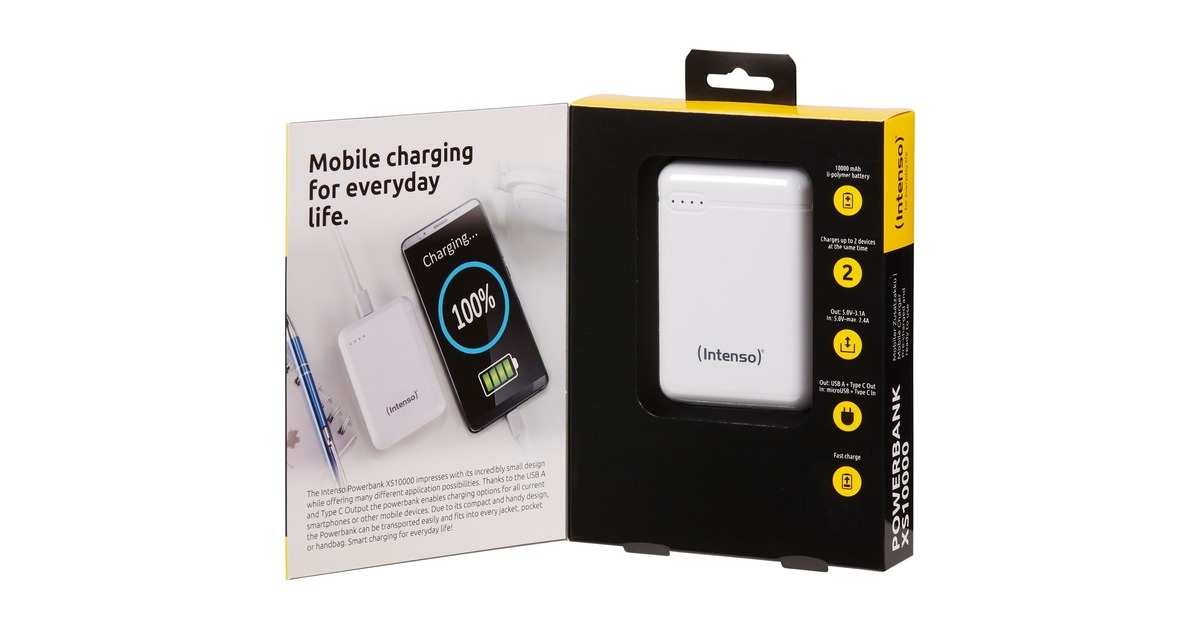 Intensos XS10000 ist eine äußerst kompakte Powerbank mit 10.000 mAh Gesamtkapazität, die jederzeit und gerade unterwegs Smartphones, Tablets und Co. mit Strom versorgt. Die XS10000 besitzt einen USB-A + USB-C Ausgang und wird selbst über MicroUSB aufgeladen. Über eine dedizierte Taste kann man schnell die Restkapazität einsehen.Art.-Nr.: 1641714