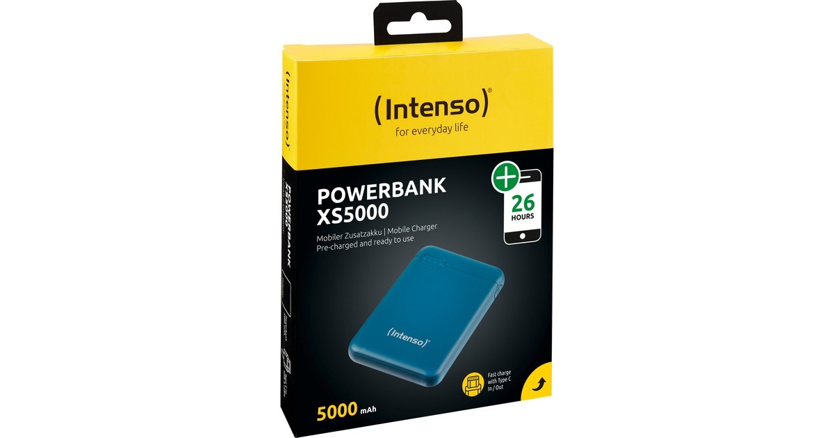 Intensos XS5000 ist eine äußerst kompakte Powerbank mit 5.000 mAh Gesamtkapazität, die jederzeit und gerade unterwegs Smartphones, Tablets und Co. mit Strom versorgt. Die XS5000 besitzt einen USB-A + USB-C Ausgang und wird selbst über MicroUSB aufgeladen. Über eine dedizierte Taste kann man schnell die Restkapazität einsehen.Art.-Nr.: 1641687