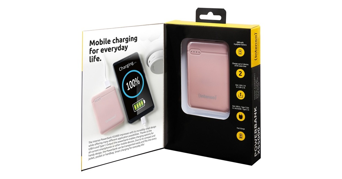 Intensos XS5000 ist eine äußerst kompakte Powerbank mit 5.000 mAh Gesamtkapazität, die jederzeit und gerade unterwegs Smartphones, Tablets und Co. mit Strom versorgt. Die XS5000 besitzt einen USB-A + USB-C Ausgang und wird selbst über MicroUSB aufgeladen. Über eine dedizierte Taste kann man schnell die Restkapazität einsehen.Art.-Nr.: 1641685