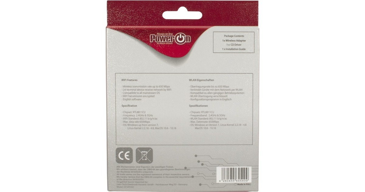 Der DMG-04 ermöglicht es, das Notebook oder den PC mit einem vorhandenen WLAN-Netzwerk (802.11 n/b/g/ac (WiFi 5)) zu verbinden um dann mit einer Geschwindigkeit von bis zu kombinierten 650 Mbit/s (200+433) auf das Internet zugreifen zu können. Diese Geschwindigkeiten und eine sehr gute Funkabdeckung werden trotz der sehr kompakten Bauform von nur 2cm Gesamtlänge erreicht. Seine kompakte Bauform lässt selbst in sehr schlanken Notebooks eine unauffällige Anwendung zu. Bei nichtgebrauch lassen sich die empfindlichen Kontakte durch eine Schutzkappe verdecken.