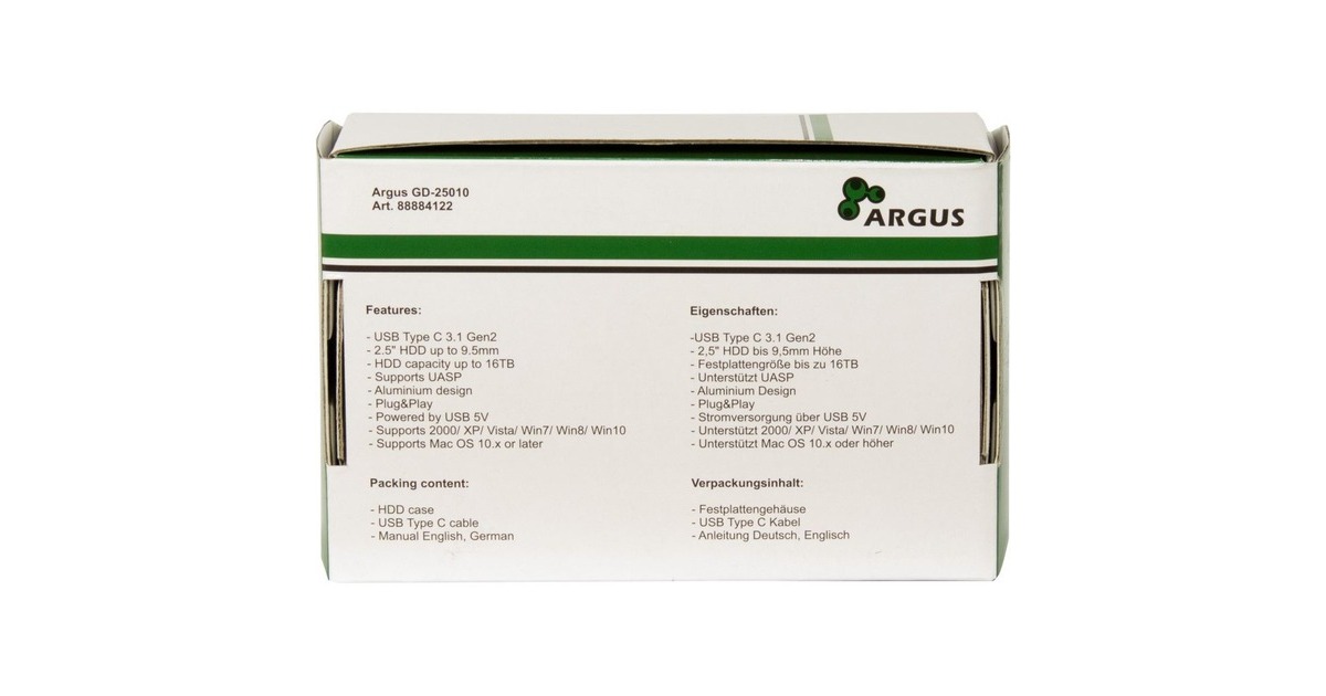 Das Laufwerksgehäuse GD-25010 kann nicht nur mit seinem superschnellen USB Typ C Anschluss und einer Datentransferrate von bis zu 10 Gbit/s trumpfen, auch das elegante Aluminiumgehäuse mit abgerundeten Ecken und gebürsteter Oberfläche überzeugt auf ganzer Länge. Im Inneren ist Platz für eine 2,5" SSD, die mit dem mitgelieferten Schraubendreher schnell und einfach in Sekundenschnelle eingebaut werden kann.Art.-Nr.: 1780141