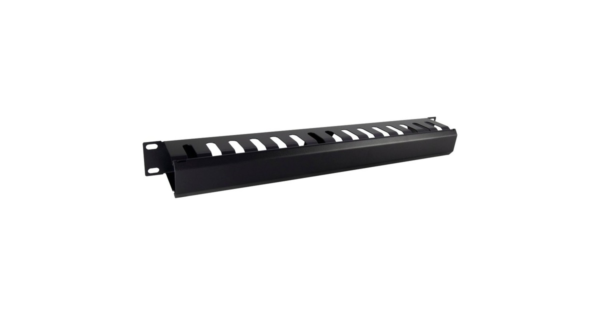 Der 1 HE Kabelführungskanal in der Farbe Schwarz RAL 9005 mit 15 Durchführungen dient zum sauberen, horizontalen Verlegen von Kabeln.Art.-Nr.: 1736081