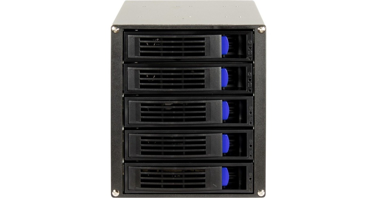 Der Inter-Tech ST-5255 ist ein 5-fach Wechselrahmen für 2,5" oder 3,5" Festplatten, der seinen Platz in drei 5,25" Schächten findet. Er unterstützt Geschwindigkeiten bis zu 6 Gb/s und bietet die Möglichkeit einer RAID- Konfiguration der verbauten Festplatten (RAID-Controller vorausgesetzt). Der Anschluss der Festplatten erfolgt über fünf einzelne S-ATA Kabel (nicht im Lieferumfang), die Stromzufuhr über zwei 4 Pin-Stromanschluss. Ein integrierter 80-mm-Lüfter sorgt zudem für eine optimale Kühlung der verbauten Festplatten.Art.-Nr.: 1804798