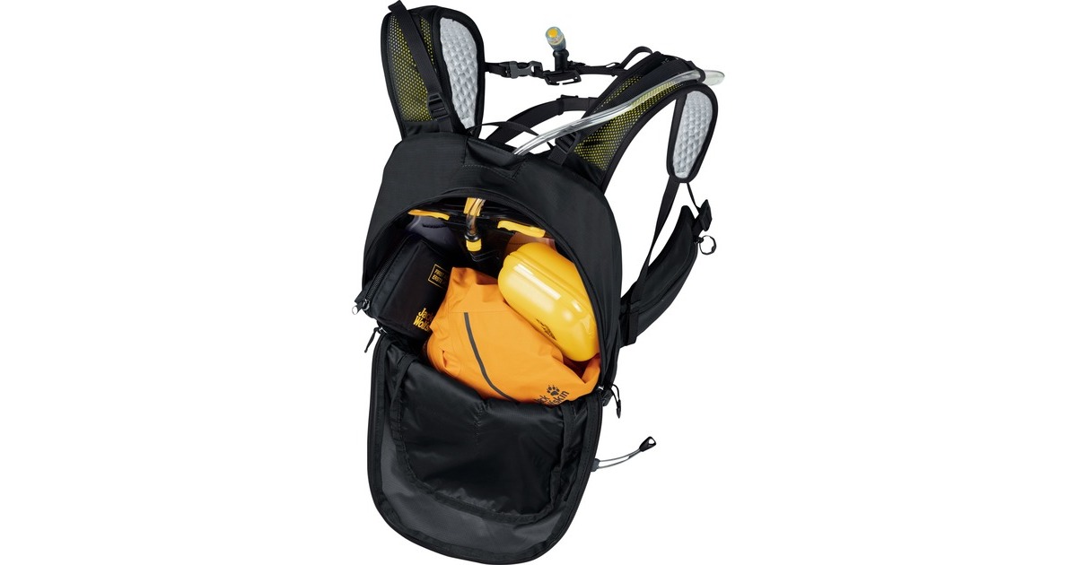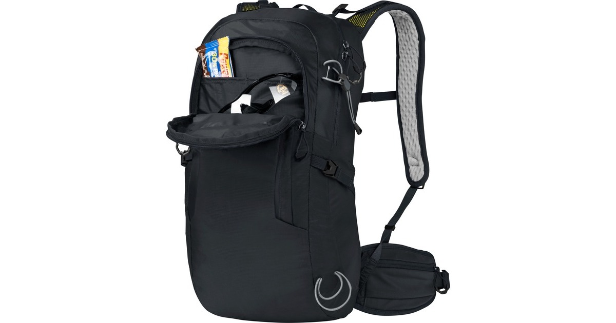 Das Innenfach im geräumigen Hauptfach bietet Platz für deine Trinkblase. In der separaten Vortasche mit Einschubfächern und dem Reißverschlussfach auf der Front bringst du Kleinigkeiten unter. In den zwei elastischen Netzseitentaschen verstaust du große Trinkflaschen und fixierst sie mit den seitlichen Kompressionsriemen. Für noch mehr Komfort sorgt der gepolsterte Hüftgurt, mit elastischer Netztasche mit Reißverschluss.Art.-Nr.: 1860483