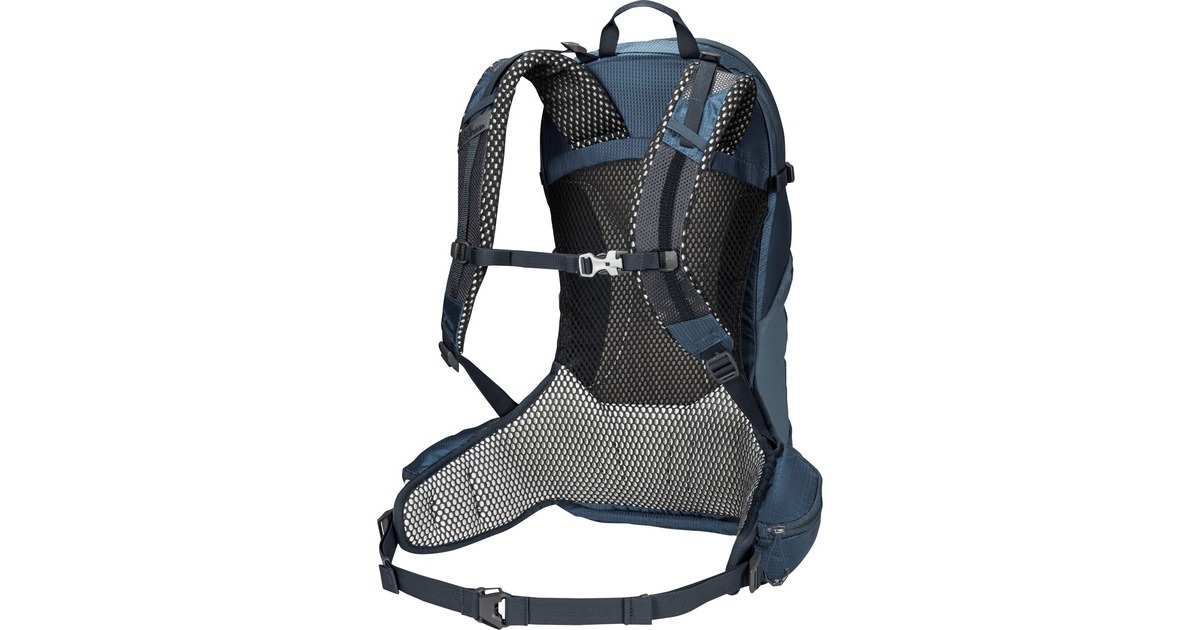 Das hinterlüftete AEROVENT-Tragesystem bietet Trage- und Klimakomfort. Das großporige und nachhaltige Airmesh sorgt für einen komfortablen Sitz und optimale Belüftung. Durch den Abstand zwischen Rücken und Packsack kann Feuchtigkeit besser entweichen und dein Rücken bleibt trocken. Die ergonomischen Schultergurte machen das Tragen sehr angenehm. Deine Trinkflasche steckst du in den ausfaltbaren Flaschenhalter am Hüftgurt, so ist sie schnell griffbereit. Die separate Vortasche bietet Stauraum für Kleinigkeiten. Weitere Verstaumöglichkeiten sind die elastischen Netztaschen auf der Vorderseite und an den Seiten und die Befestigungsschlaufen für deine Trekkingstöcke. Zusätzlich ist er mit einer Vorbereitung für ein Trinksystem ausgestattet.