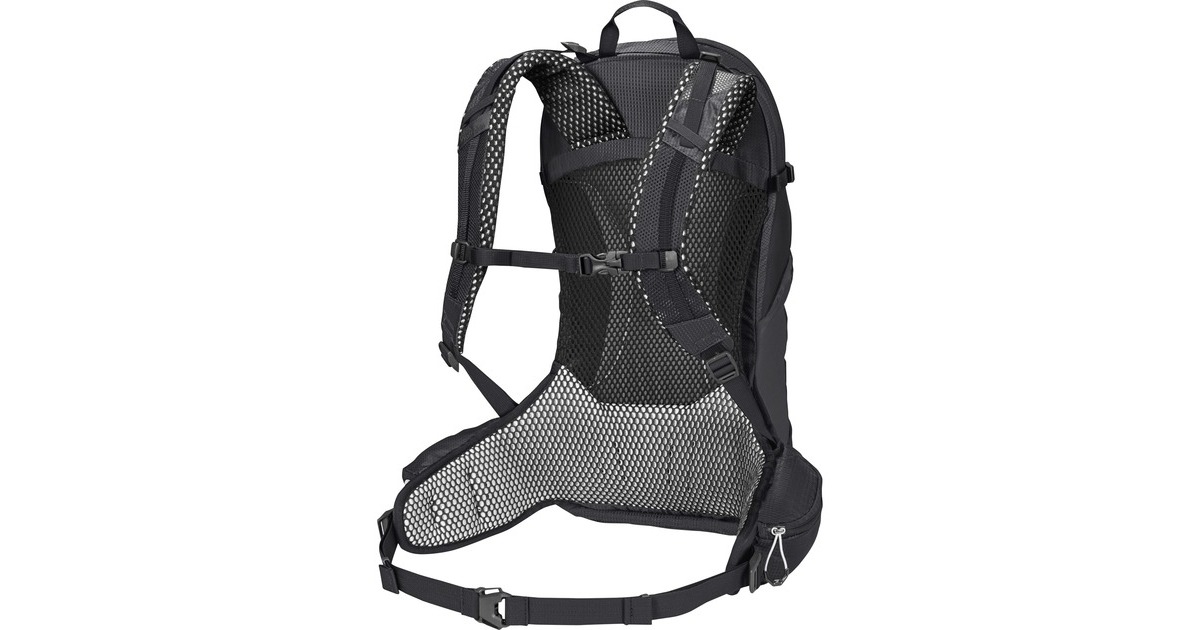Das hinterlüftete AEROVENT-Tragesystem bietet Trage- und Klimakomfort. Das großporige und nachhaltige Airmesh sorgt für einen komfortablen Sitz und optimale Belüftung. Durch den Abstand zwischen Rücken und Packsack kann Feuchtigkeit besser entweichen und dein Rücken bleibt trocken. Die ergonomischen Schultergurte machen das Tragen sehr angenehm. Deine Trinkflasche steckst du in den ausfaltbaren Flaschenhalter am Hüftgurt, so ist sie schnell griffbereit. Die separate Vortasche bietet Stauraum für Kleinigkeiten. Weitere Verstaumöglichkeiten sind die elastischen Netztaschen auf der Vorderseite und an den Seiten und die Befestigungsschlaufen für deine Trekkingstöcke. Zusätzlich ist er mit einer Vorbereitung für ein Trinksystem ausgestattet.