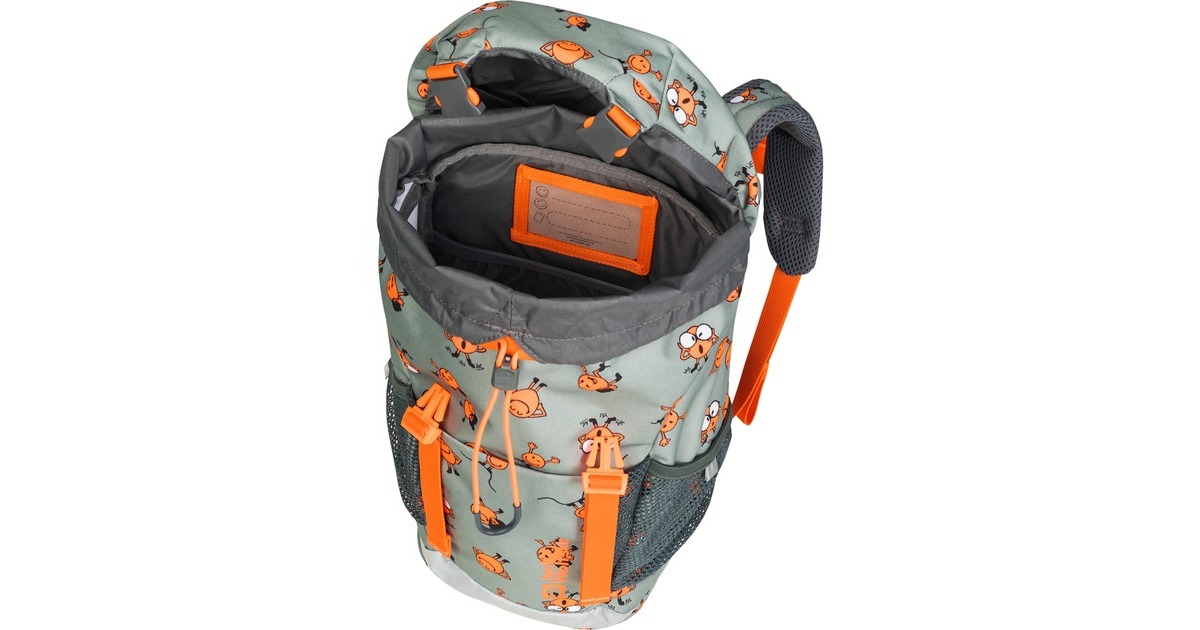 Frontfach, Trinkflaschenhalter, Hauptfach, Fenster mit Namensschild |