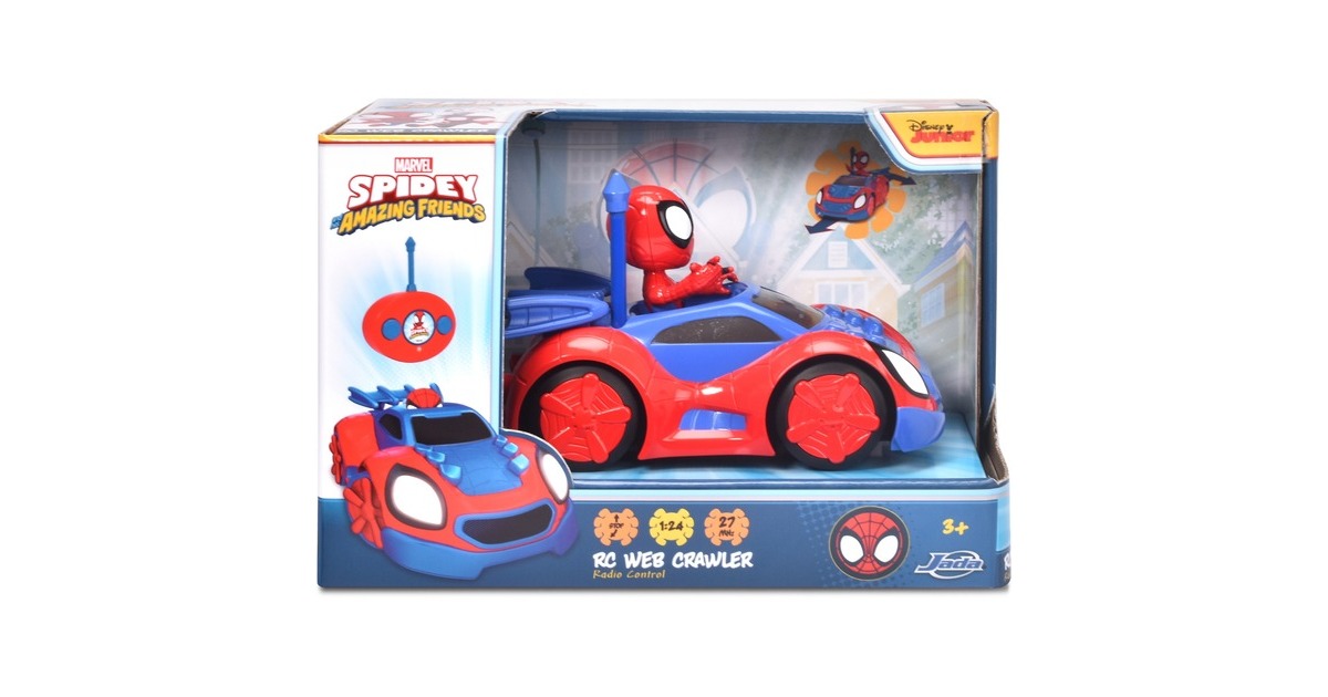 Marvel Spidey and his Amazing Friends erzählt die Geschichte der drei Super-Freunde Peter, Miles und Gwen. Der RC Spidey Web Crawler kommt im coolen Spidey-Design und wird von einer originalgetreuen Spidey-Figur gesteuert. Mit der Fernbedienung lässt sich Spidey geradeaus, nach vorne und mit coolen Rückwärtsdrehungen für eine perfekte Ganovenjagt steuern.Art.-Nr.: 1825601| Altersempfehlung | ab 36 Monaten |