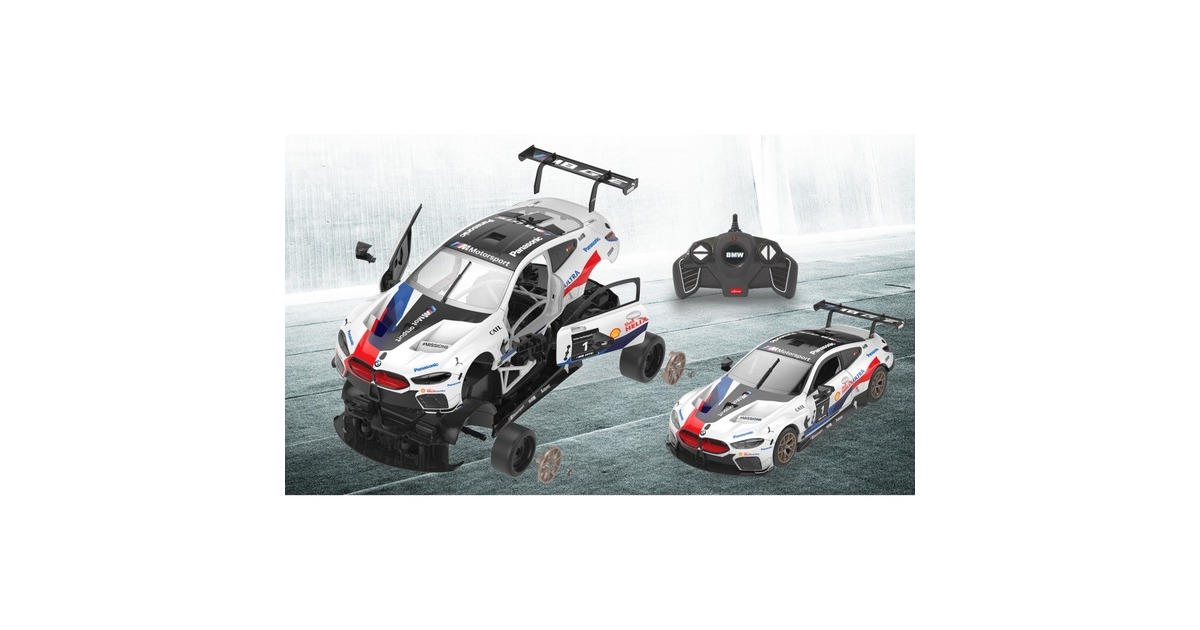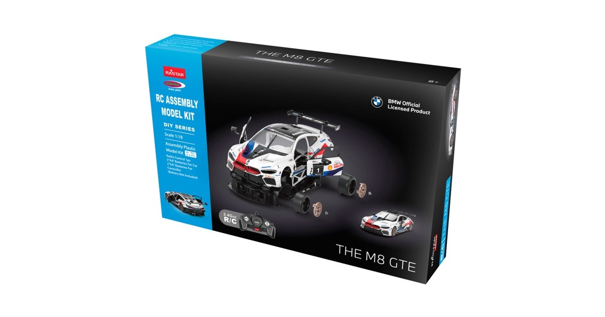 Der BMW M8 GTE Bausatz von Jamara ist ein 74-teiliges Set mit dem man sich seinen eigenen RC-Rennwagen mit detailgetreuem Innenraum sowie manuell öffenbaren Türen zusammenbauen kann. Die Bauteile werden durch einfaches Zusammenstecken miteinander verbunden, somit ist kein Werkzeug oder Kleber notwendig. Der Bausatz beinhaltet außerdem einen Dekorbogen zum Aufkleben. Mit der ergonomischen Fernsteuerung hält man, wie in einem echten Rennwagen, die Schaltzentrale in der Hand und erreicht Geschwindigkeiten von bis zu 8 km/h. Leicht zu erlernende Kommandos lassen das Modell genau das tun was man vorgibt. Also, ab zur Stadtrunde auf dem Parkett im Kinderzimmer und dem Spielspaß steht nichts mehr im Wege.Art.-Nr.: 1798444
