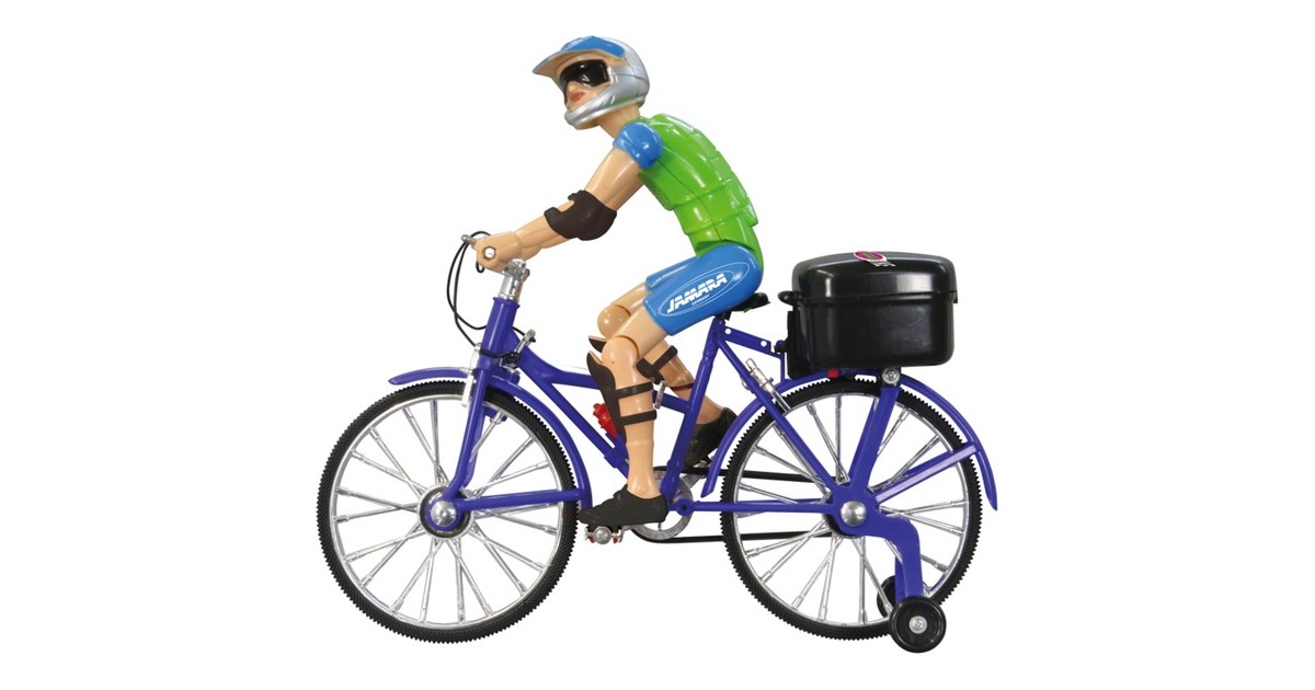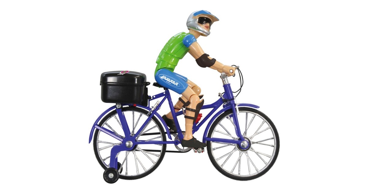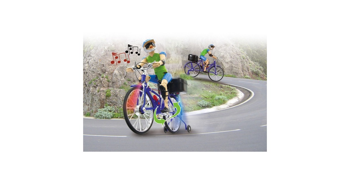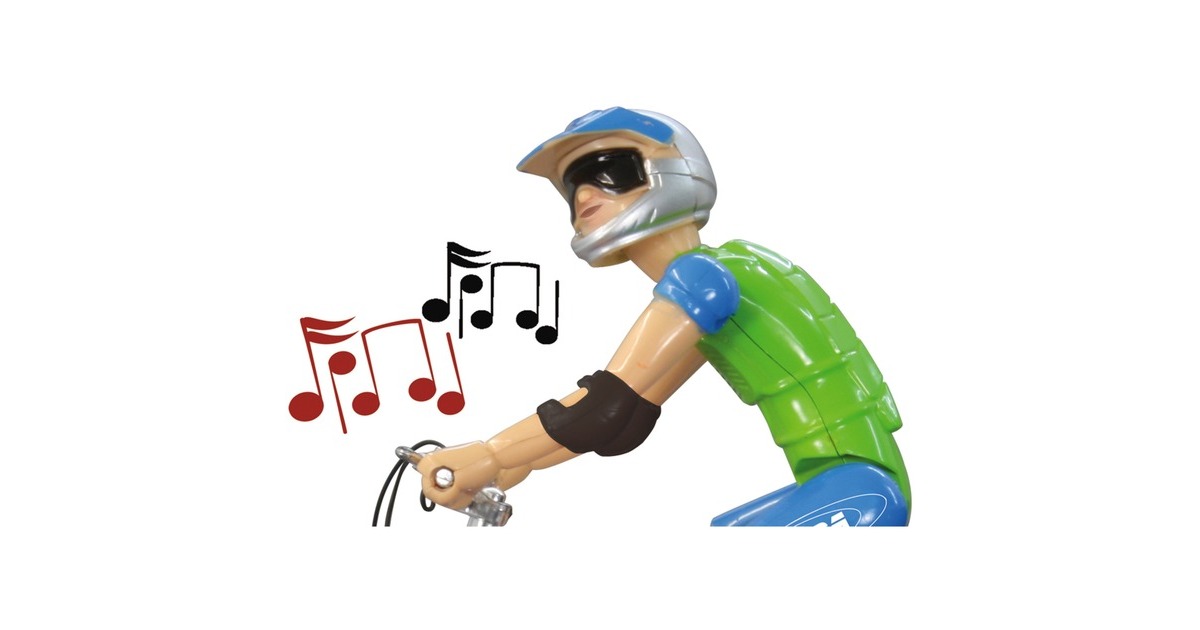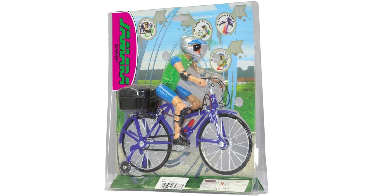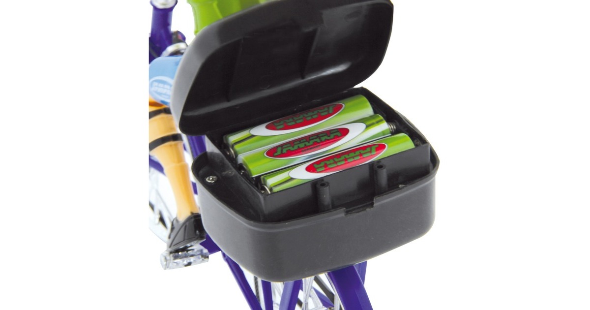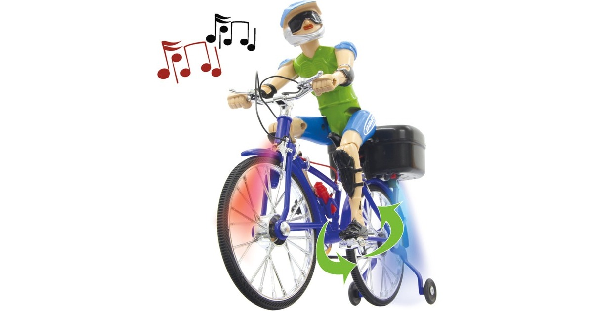 Diese Melodie wird man nicht mehr los! Ein freifahrendes Fahrrad mit einem lustigen, pfeifenden Fahrer. Dieser Tritt mit realistischen Trittbewegungen in die Pedale und bringt das Fahrrad in Bewegung. Dazu zwitschert der Radler ein lustiges Lied welches man im Übrigen auch als Klingelton auf der Jamara-Website kostenlos downloaden kann. Man wird es lieben!Art.-Nr.: 1273953