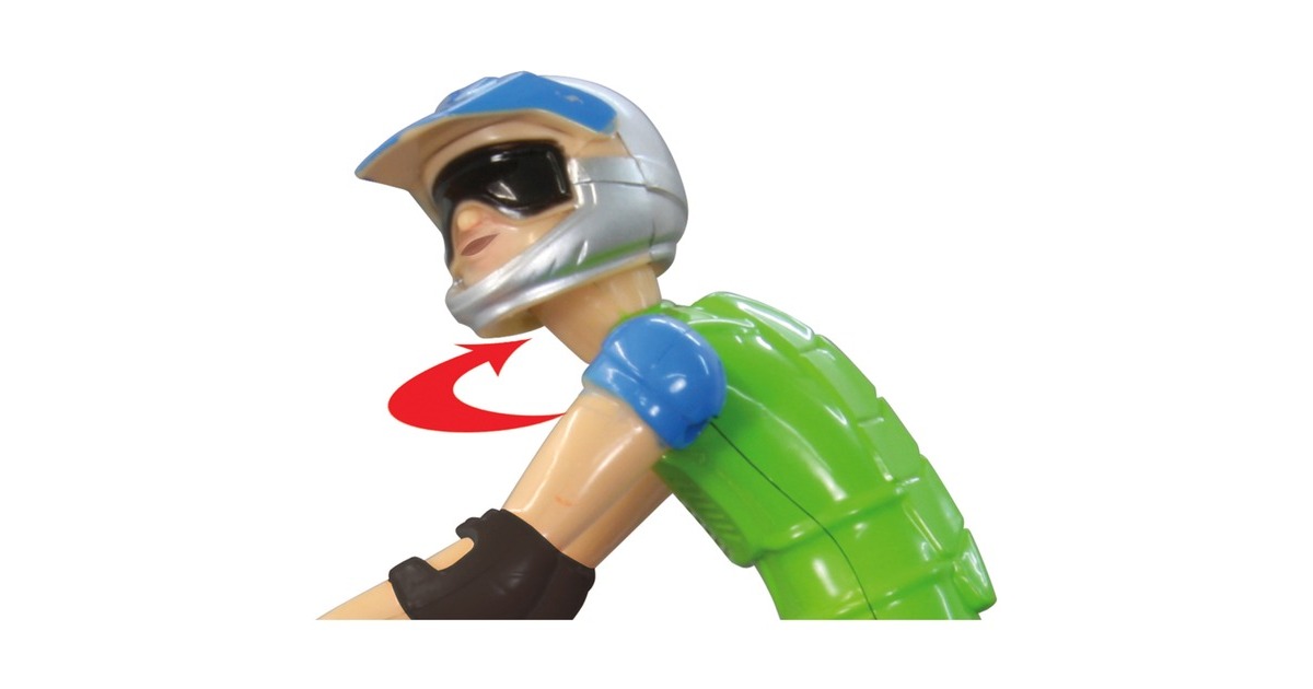 Beweglicher Kopf; realistische Tretbewegung, Musik, Licht |