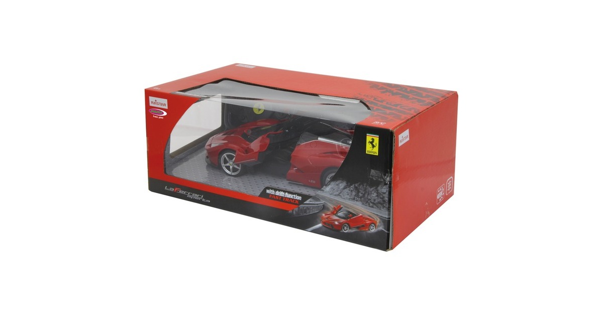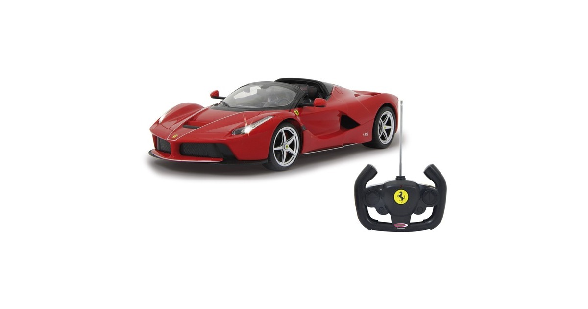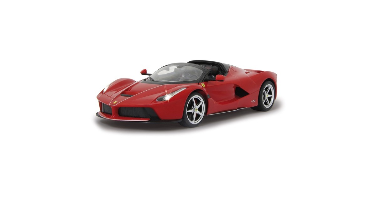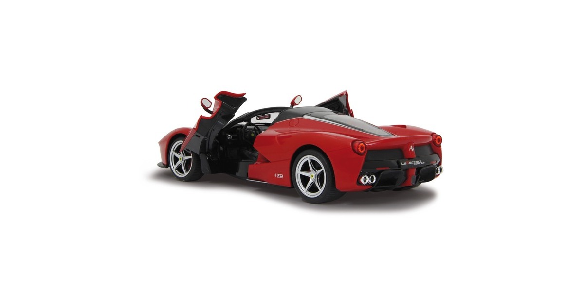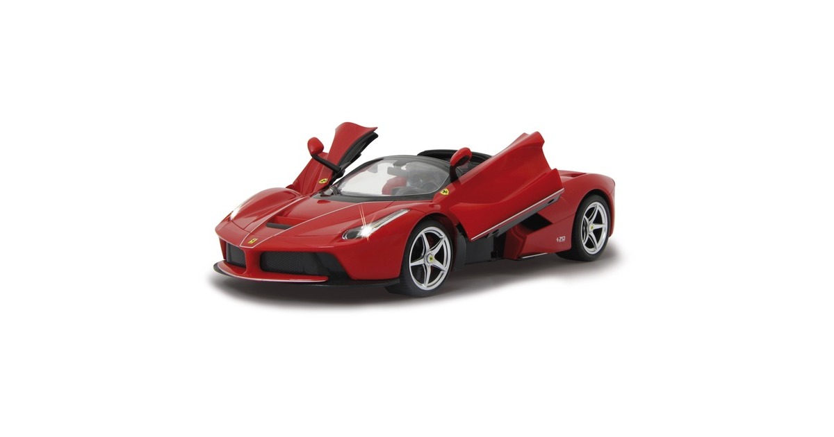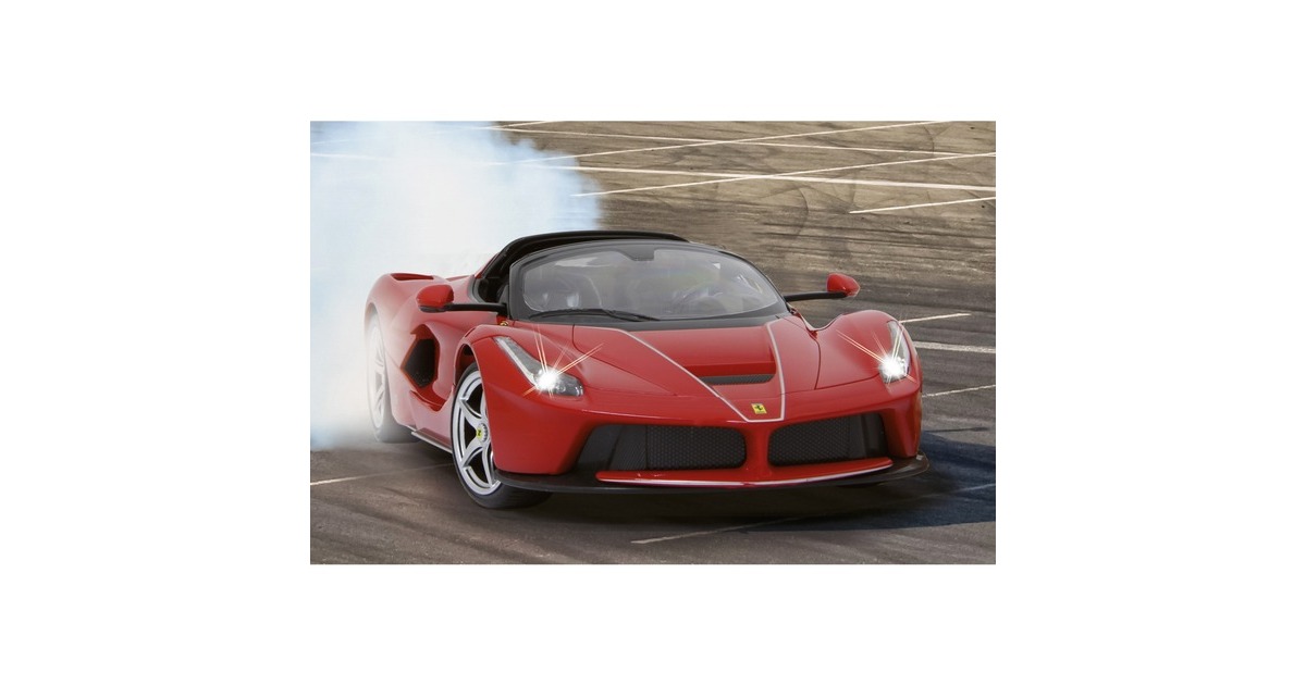 Wer hat nicht schon davon geträumt, einmal einen schönen sportlichen Wagen zu bewegen? Mit den offiziell lizenzierten Deluxe Car Modellen von Jamara kann man sich diesen Traum erfüllen und sich den sportlichen Ferrari LaFerrari Aperta im Maßstab 1:14 ins Wohnzimmer holen. Mit LED-Licht und nachgebildeten Details, die mit viel Liebe umgesetzt wurden, überzeugen die Fernlenkfahrzeuge auch durch die hochwertige Verarbeitung und den detailgetreuen Innenraum. Auch die Türen lassen sich manuell öffnen und schließen. Der Ferrari LaFerrari Aperta verfügt sogar über eine Driftfunktion. Im Lieferumfang ist eine 2-Kanal-27-MHz-Fernsteuerung und eine Anleitung enthalten, eine Montage ist nicht erforderlich.Art.-Nr.: 1553067