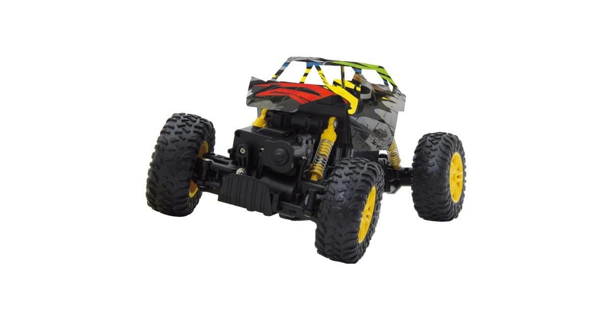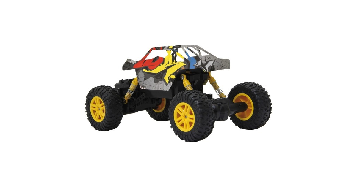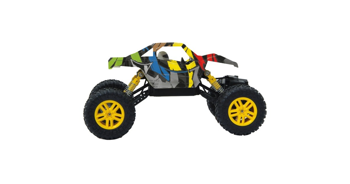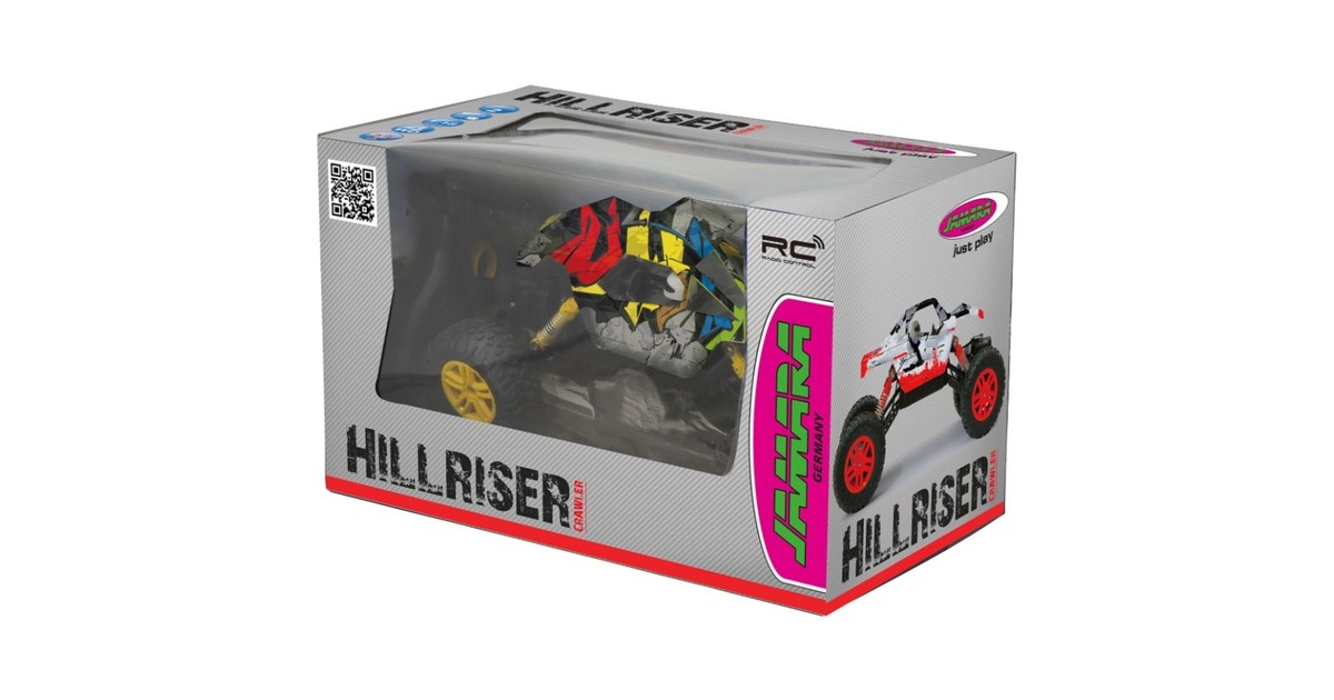 Brandneu in der Jamara Produktpalette ist der Hillriser Crawler 2,4 GHz. Wie der Name schon sagt kann der Crawler selbst Felsbrocken und andere absolut unwegsame und steile Gegebenheiten meistern. Für diese Fähigkeit sorgen die zwei leistungsstarken Antriebsmotoren (vorne und hinten), die vom Chassis entkoppelten Achsen, das gefederte Fahrwerk und nicht zuletzt der Allradantrieb. So erhält der Hillriser Crawler eine extreme Verschränkungsfreiheit und damit eine sehr große Bodenfreiheit. Der hochwertige Crawler ist ausgestattet mit einer Gummibereifung und der einstellbaren Spur, steuerbar über die 2,4 GHz Fernsteuerung. Also, ab in die Berge.Art.-Nr.: 1391554