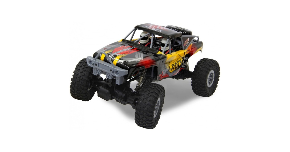 Wie der Name schon sagt kann der Jamara J-Rock Crawler selbst Felsbrocken und andere absolut unwegsame und steile Gegebenheiten meistern. Für diese Fähigkeit sorgen die zwei leistungsstarken Antriebsmotoren (vorne und hinten), die vom Chassis entkoppelten Achsen, das gefederte Fahrwerk und nicht zuletzt der Allradantrieb. So erhält der J-Rock Crawler eine extreme Verschränkungsfreiheit und damit eine sehr große Bodenfreiheit. Der hochwertige Crawler ist ausgestattet mit einer Gummibereifung und der einstellbaren Spur, steuerbar über die 2,4-GHz-Fernsteuerung. Also, ab in die Berge.Art.-Nr.: 1537632