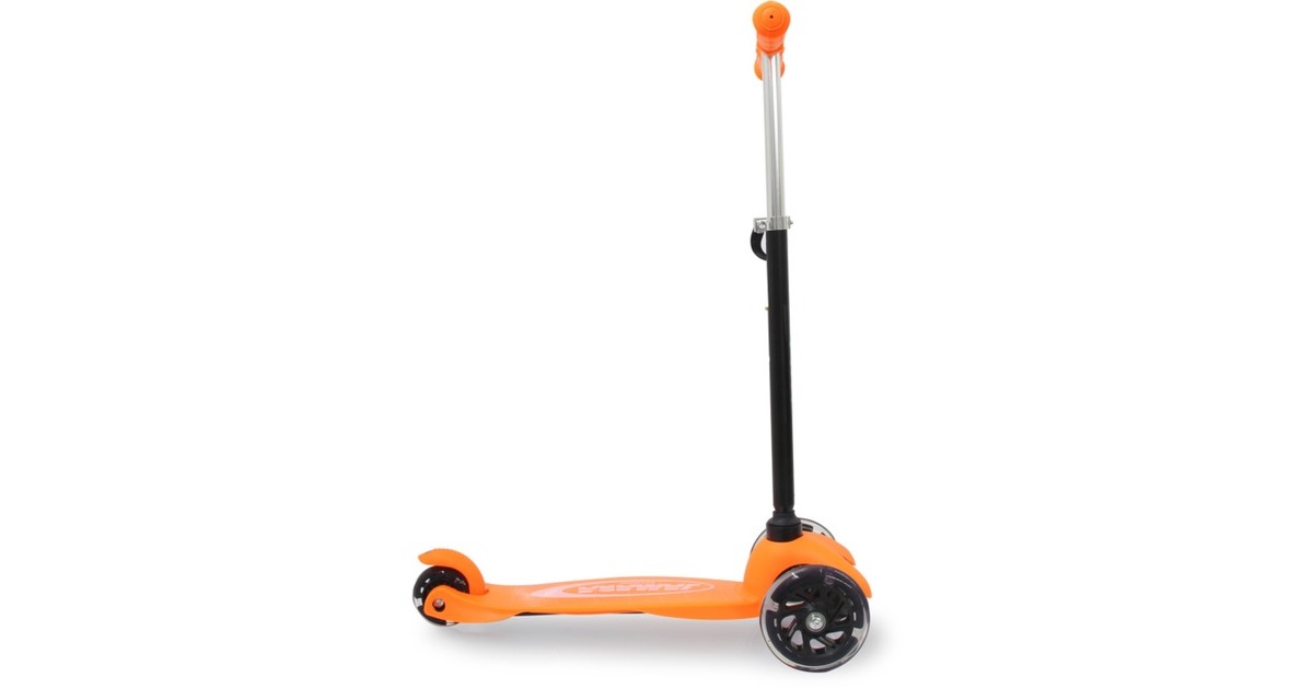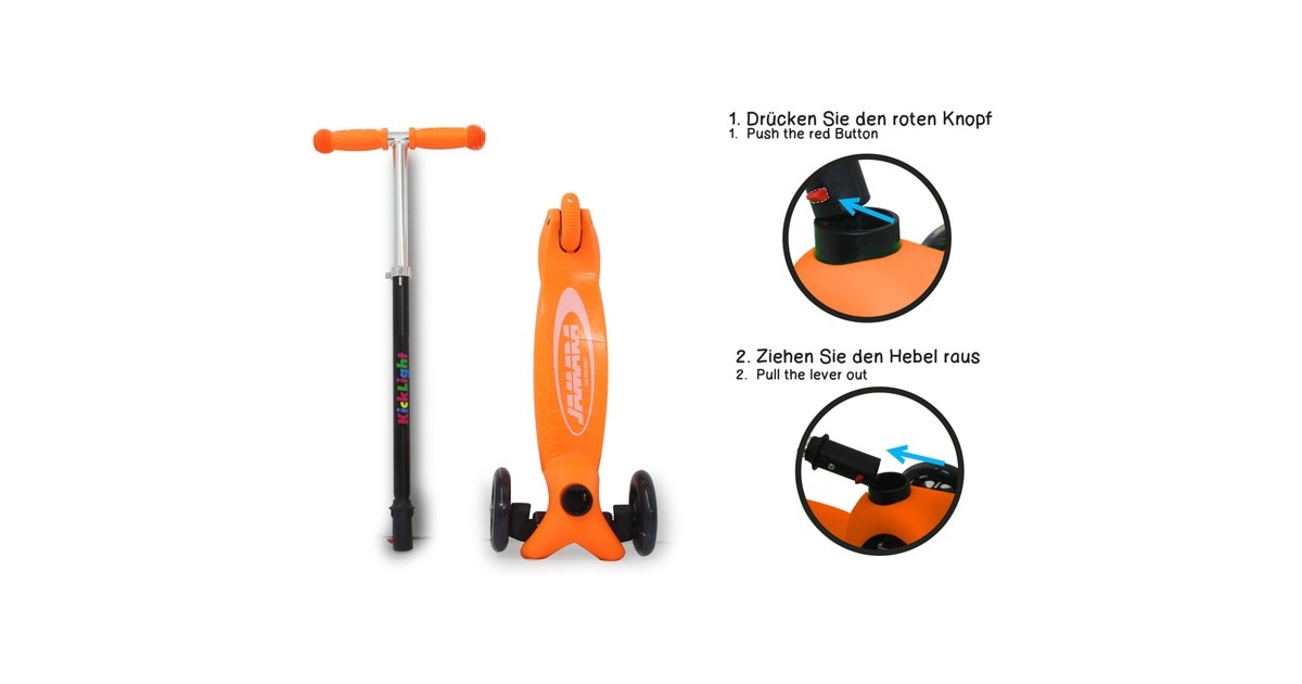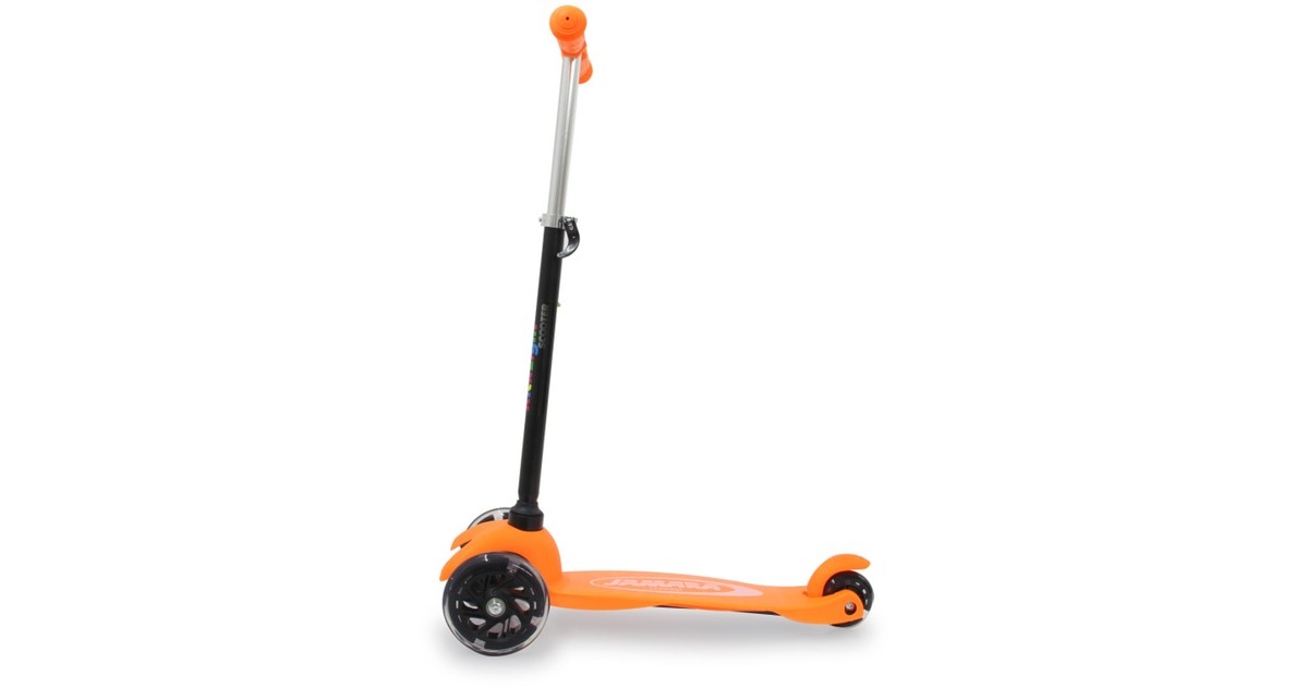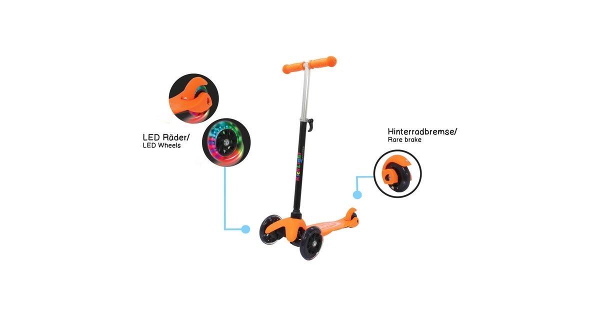 Der KickLight Scooter bietet sich optimal zum Training des Gleichgewichts an. Der stabil konstruierte KickLight Scooter ist mit drei Rädern, einer Hinterradbremse, Kugellager vorne und hinten sowie einem rutschhemmenden Trittbrett ausgestattet. Zur Richtungsänderung ist die Lenkstange nach links und rechts beweglich und verfügt über Vollgummi Griffe mit Sturzpads. Der Lenker lässt sich in der Höhe verstellen und kann so der Größe des Kindes angepasst werden. Ein großes Highlight sind die Räder, die während der Fahrt leuchten und so für noch mehr Fahrspaß sorgen. Art.-Nr.: 1590996