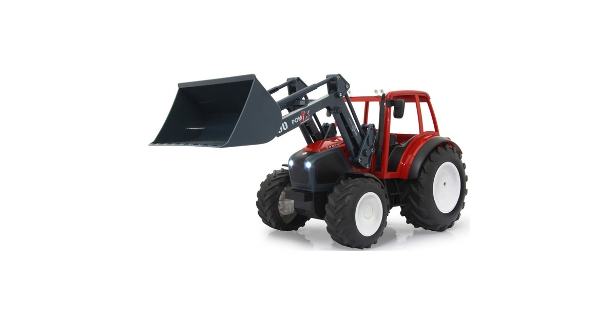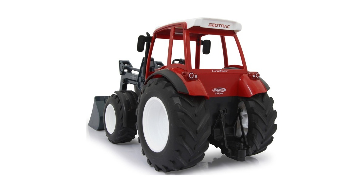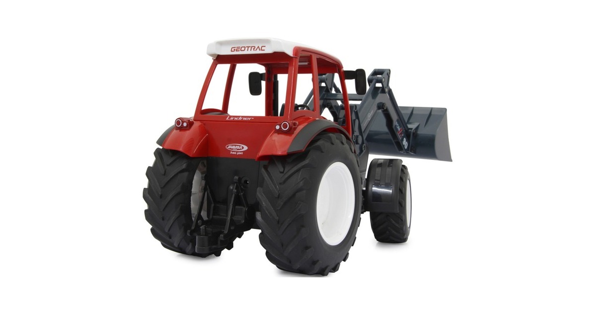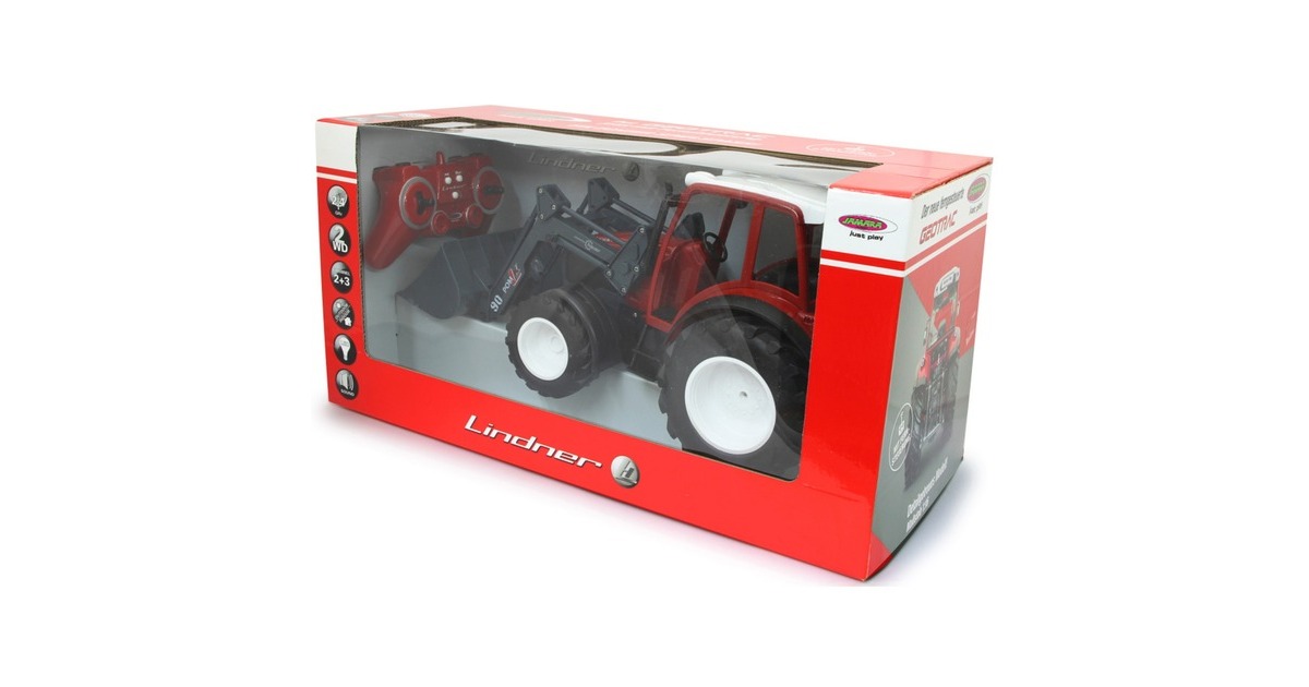 Der ferngesteuerte Lindner Geotrac mit Frontlader ergänzt die große Farm- und Argarfahrzeugserie von Jamara um ein weiteres Highlight. Der Traktor wurde vom Hersteller exklusiv nur für Jamara lizenziert und verfügt über viele Funktionalitäten die man sich vom großen Original abgeschaut hat . Im Original vereint der Geotrac besonders hochwertige Komponenten in einem kompakten und wendigen Traktor für die landwirtschaftlichen Betriebe. Diese Eigenschaften sind jetzt in einem formschönen Modell im Maßstab 1:16 übernommen worden. Ein Highlight beim Geotrac ist der Hauer POM-LX Frontlader der über die Fernbedienung gesteuert wird. Auf Knopfdruck hebt und senkt sich der Ladearm mit der großen Schaufel und bringt neben den Fahrfunktionen des Traktors zusätzlichen Spielspaß. An die universelle Anhängerkupplung und Anschlussbuchse können sämtliche Jamara Anbaugeräte angehängt werden.Art.-Nr.: 1752391