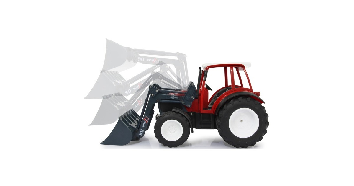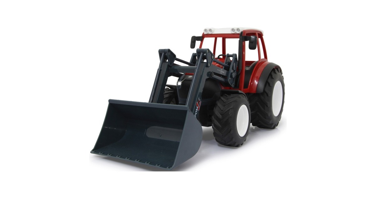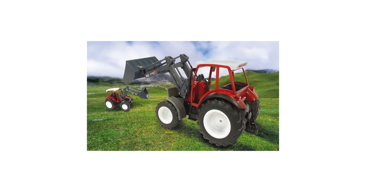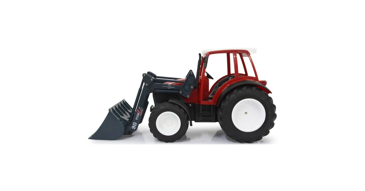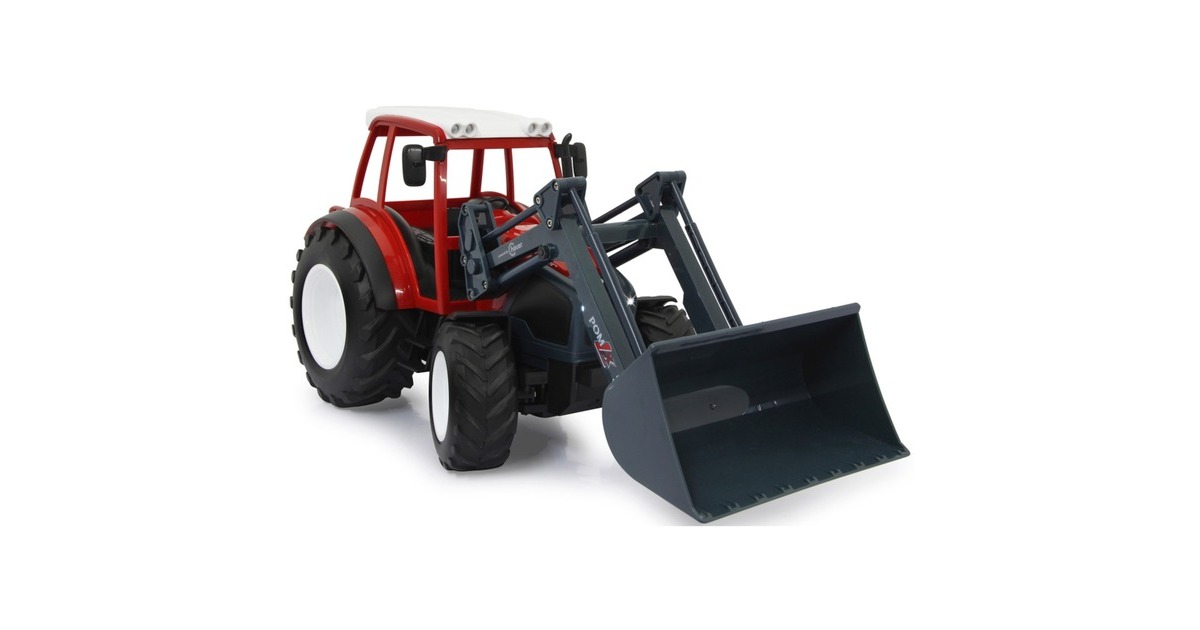 Der ferngesteuerte Lindner Geotrac mit Frontlader ergänzt die große Farm- und Argarfahrzeugserie von Jamara um ein weiteres Highlight. Der Traktor wurde vom Hersteller exklusiv nur für Jamara lizenziert und verfügt über viele Funktionalitäten die man sich vom großen Original abgeschaut hat . Im Original vereint der Geotrac besonders hochwertige Komponenten in einem kompakten und wendigen Traktor für die landwirtschaftlichen Betriebe. Diese Eigenschaften sind jetzt in einem formschönen Modell im Maßstab 1:16 übernommen worden. Ein Highlight beim Geotrac ist der Hauer POM-LX Frontlader der über die Fernbedienung gesteuert wird. Auf Knopfdruck hebt und senkt sich der Ladearm mit der großen Schaufel und bringt neben den Fahrfunktionen des Traktors zusätzlichen Spielspaß. An die universelle Anhängerkupplung und Anschlussbuchse können sämtliche Jamara Anbaugeräte angehängt werden.Art.-Nr.: 1752391